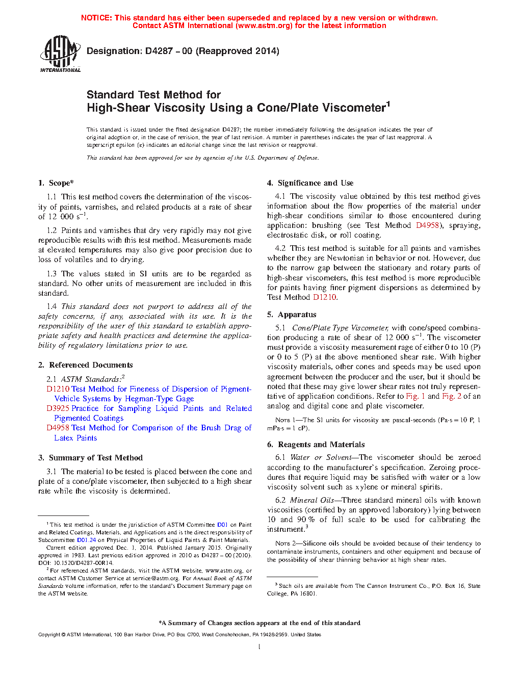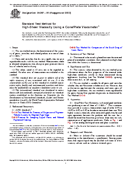 4.1 The viscosity value obtained by this test method gives information about the flow properties of the material under high-shear conditions similar to those encountered during application: brushing (see Test Method D4958), spraying, electrostatic disk, or roll coating.