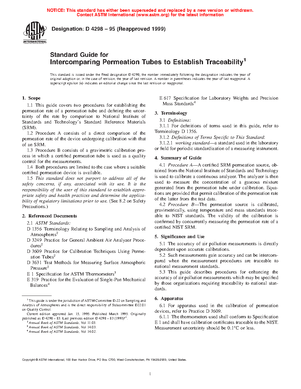 1.4 Both procedures are limited to the case where a suitable certified permeation device is available.