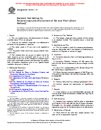 1.1 This test method covers the determination of toluene-insoluble matter (TI) in tar and pitch.