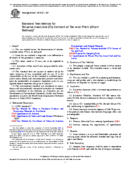 1.1 This test method covers the determination of toluene-insoluble matter (TI) in tar and pitch.