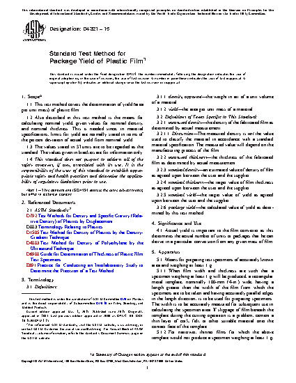 1.1 This test method covers the determination of yield (area per unit mass) of plastic film.