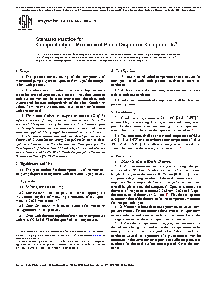 2.1 This practice identifies the compatibility of the mechanical pump dispenser components with consumer-type products.