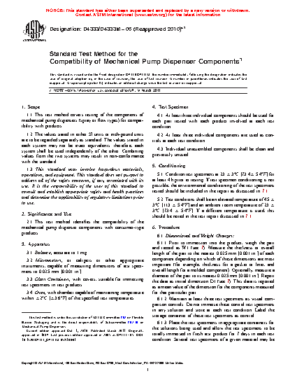 2.1 This practice identifies the compatibility of the mechanical pump dispenser components with consumer-type products.