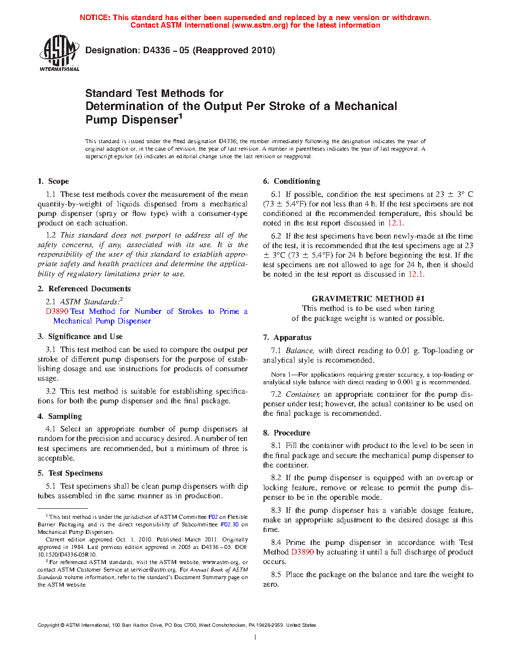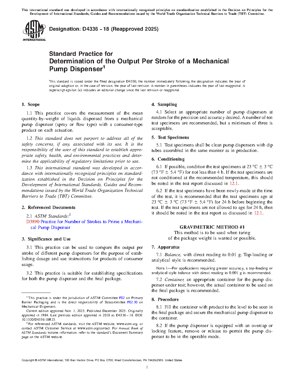 This test method is suitable for establishing specifications for both the pump dispenser and the final package.