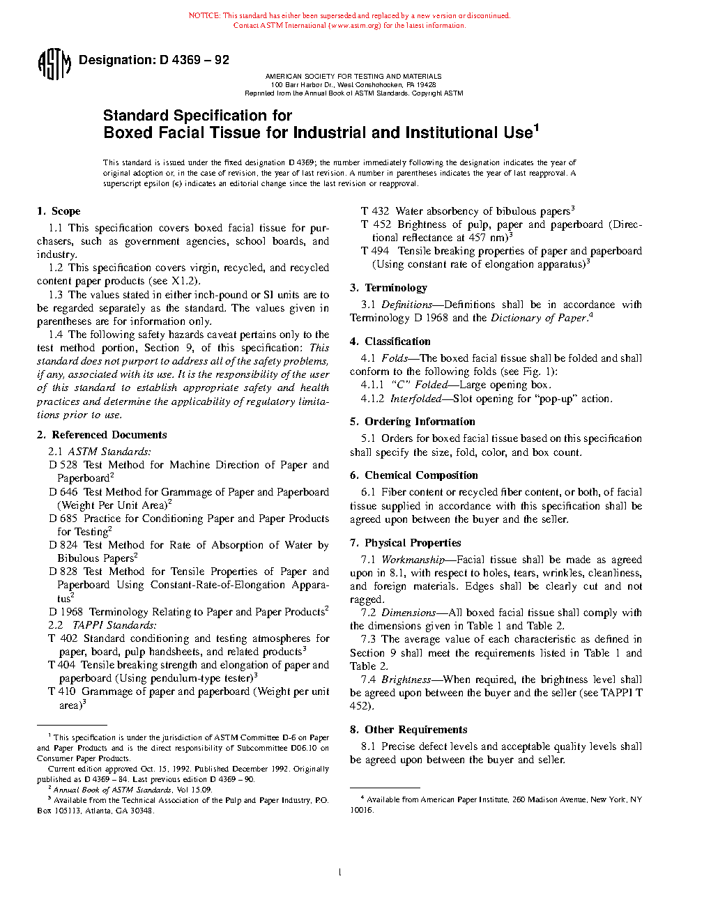 1.1 This specification covers boxed facial tissue for purchasers, such as government agencies, school boards, and industry.