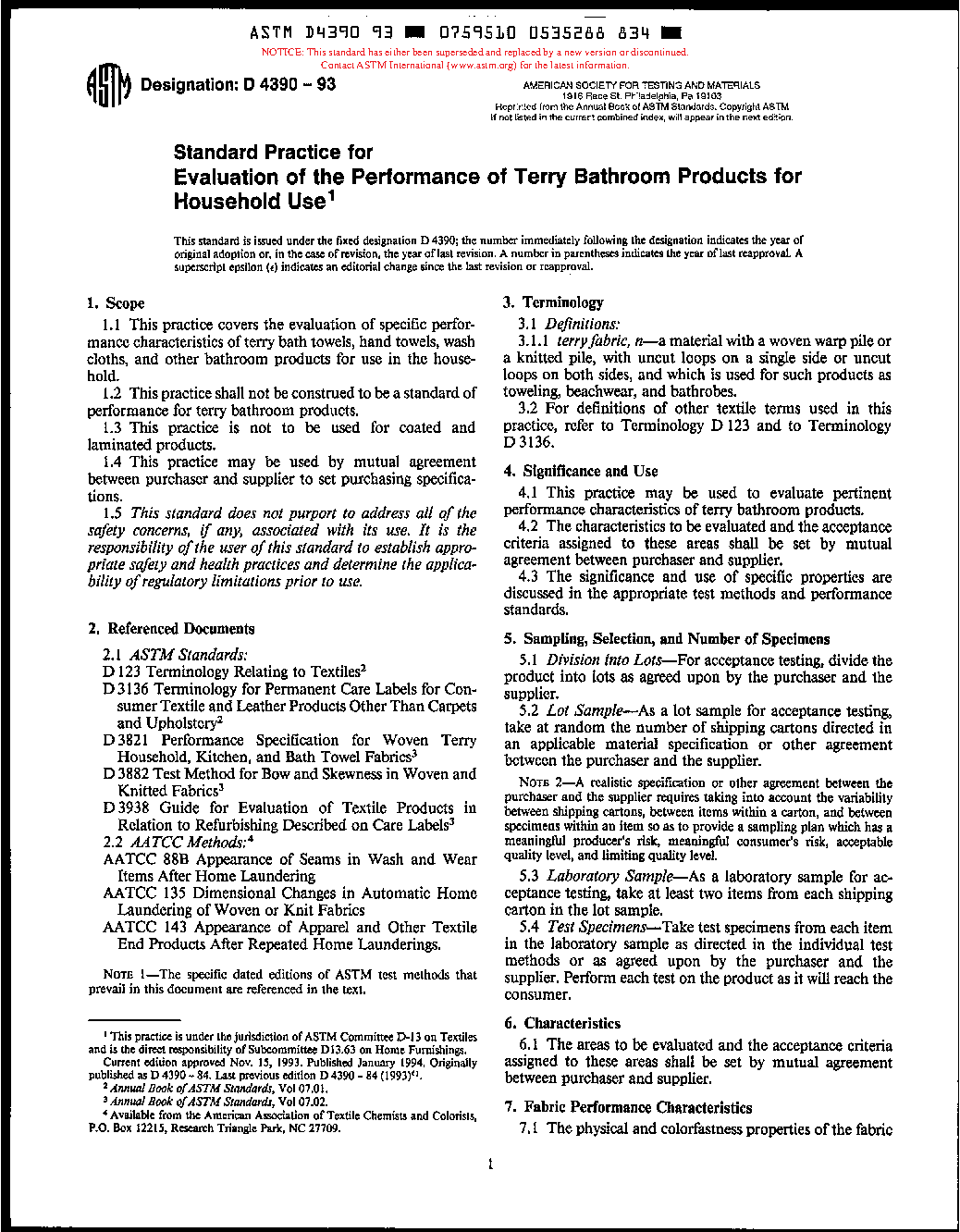 Practice for the Evaluation of the Performance of Terry Bathroom Products for Household Use (Withdrawn 1994)