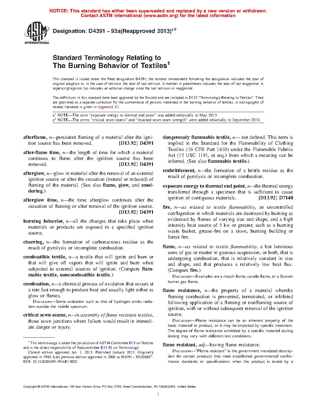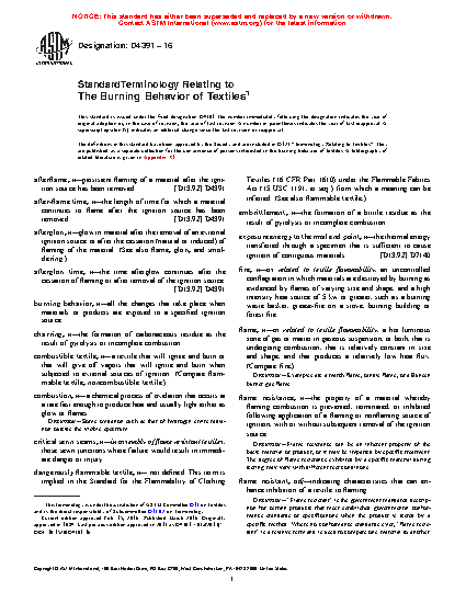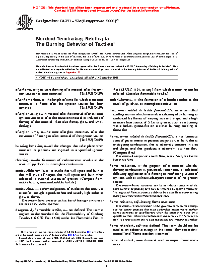 Standard Terminology Relating to The Burning Behavior of Textiles