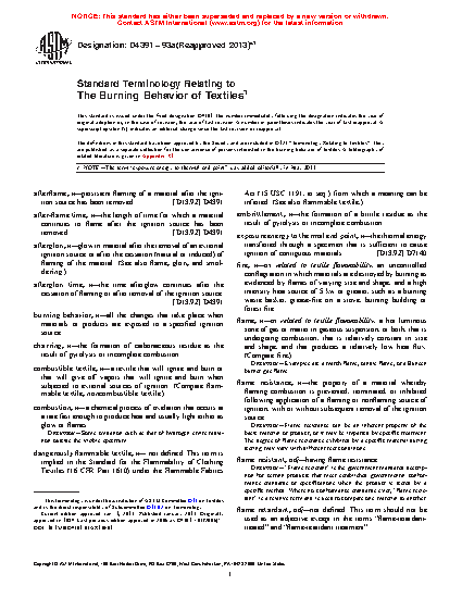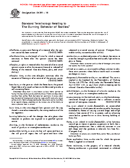 Standard Terminology Relating to The Burning Behavior of Textiles