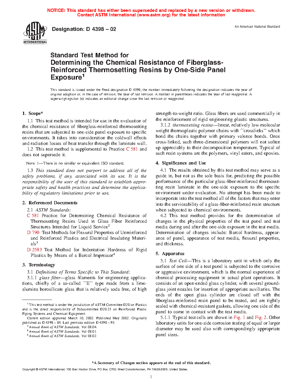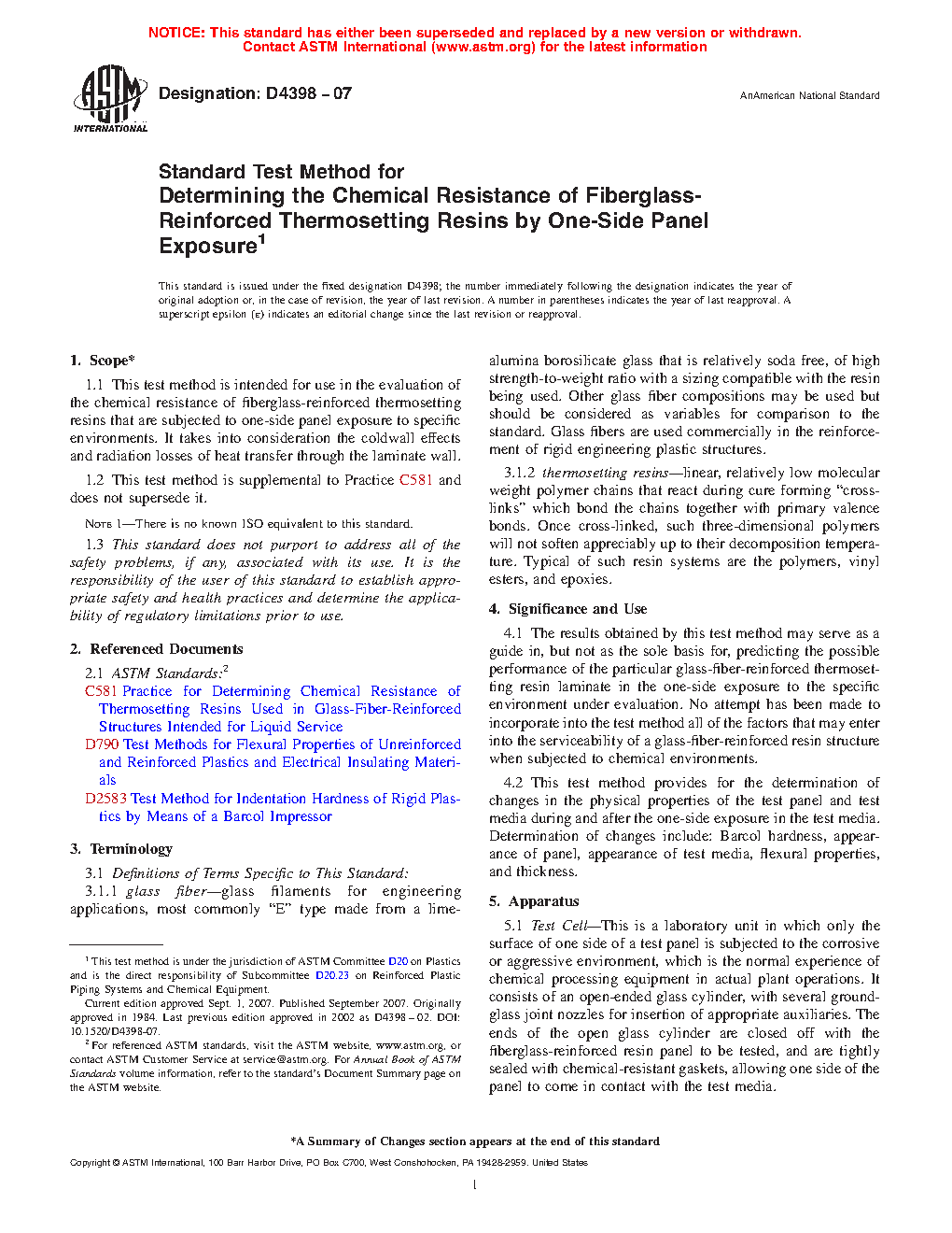1.2 This test method is supplemental to Practice C 581 and does not supersede it. Note 1 - There is no known ISO equivalent to this standard.