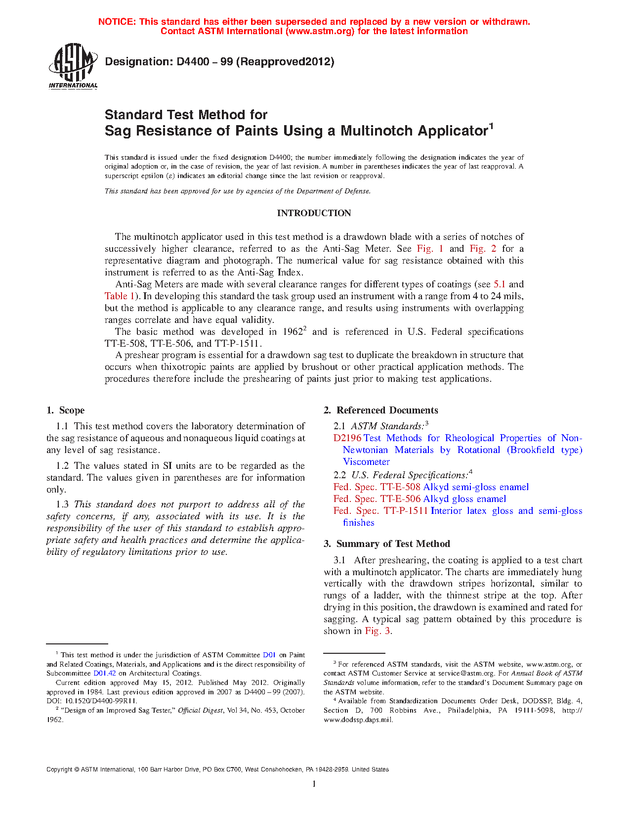 1.1 This test method covers the laboratory determination of the sag resistance of aqueous and nonaqueous liquid coatings at any level of sag resistance.