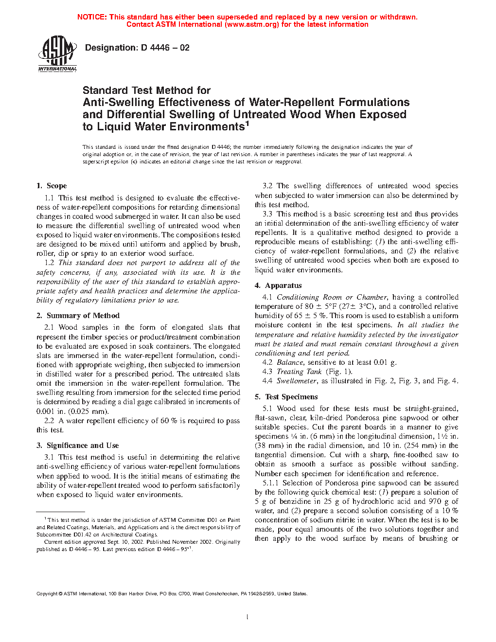 3.2 The swelling differences of untreated wood species when subjected to water immersion can also be determined by this test method.