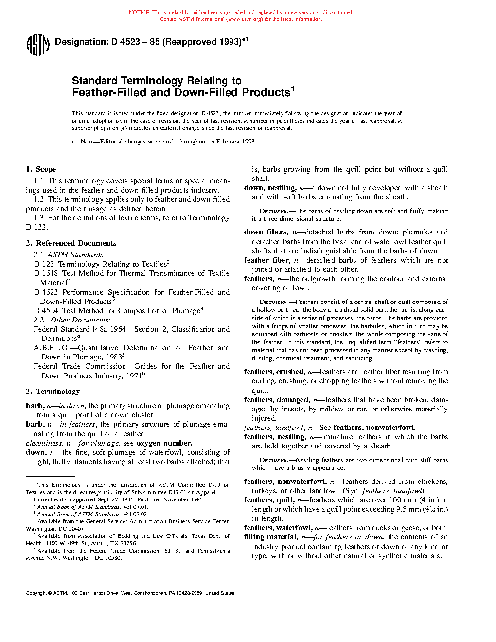 Standard Terminology Relating to Feather-Filled and Down-Filled Products (Withdrawn 2002)