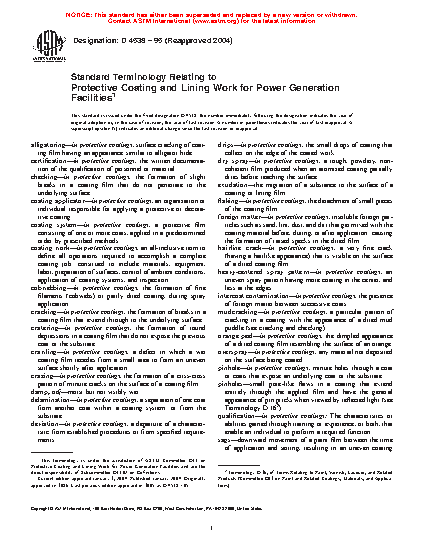 Standard Terminology Relating to Protective Coating and Lining Work for Power Generation Facilities