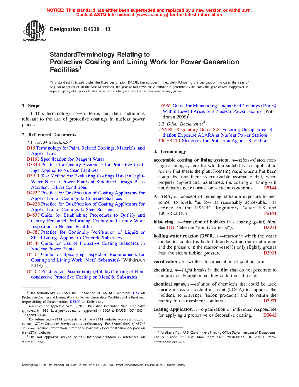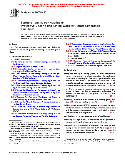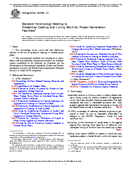 1.1 This terminology covers terms and their definitions relevant to the use of protective coatings in nuclear power plants.