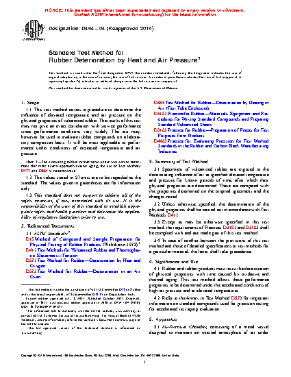 4.1 Rubber and rubber products must resist the deterioration of physical properties with time caused by oxidative and thermal aging. This test method allows these performance properties to be determined under the accelerated conditions of high air pressure and at elevated temperatures.