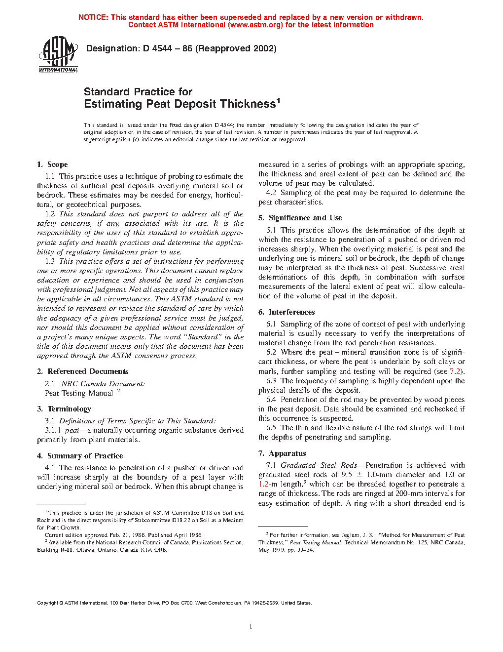 1.1 This practice uses a technique of probing to estimate the thickness of surficial peat deposits overlying mineral soil or bedrock.