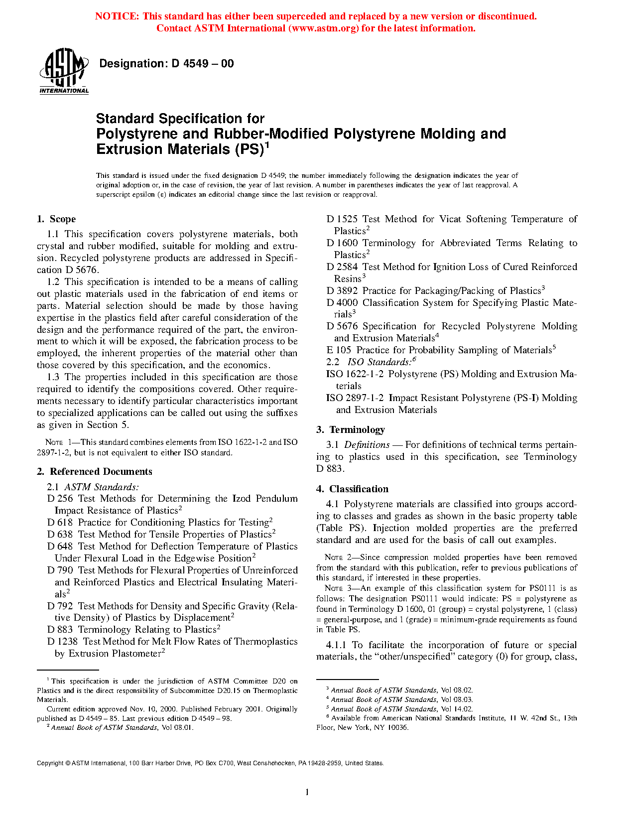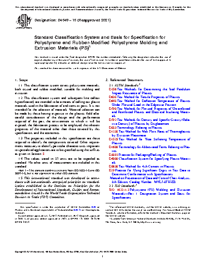 1.1 This classification system covers polystyrene materials, both crystal and rubber modified, suitable for molding and extrusion.