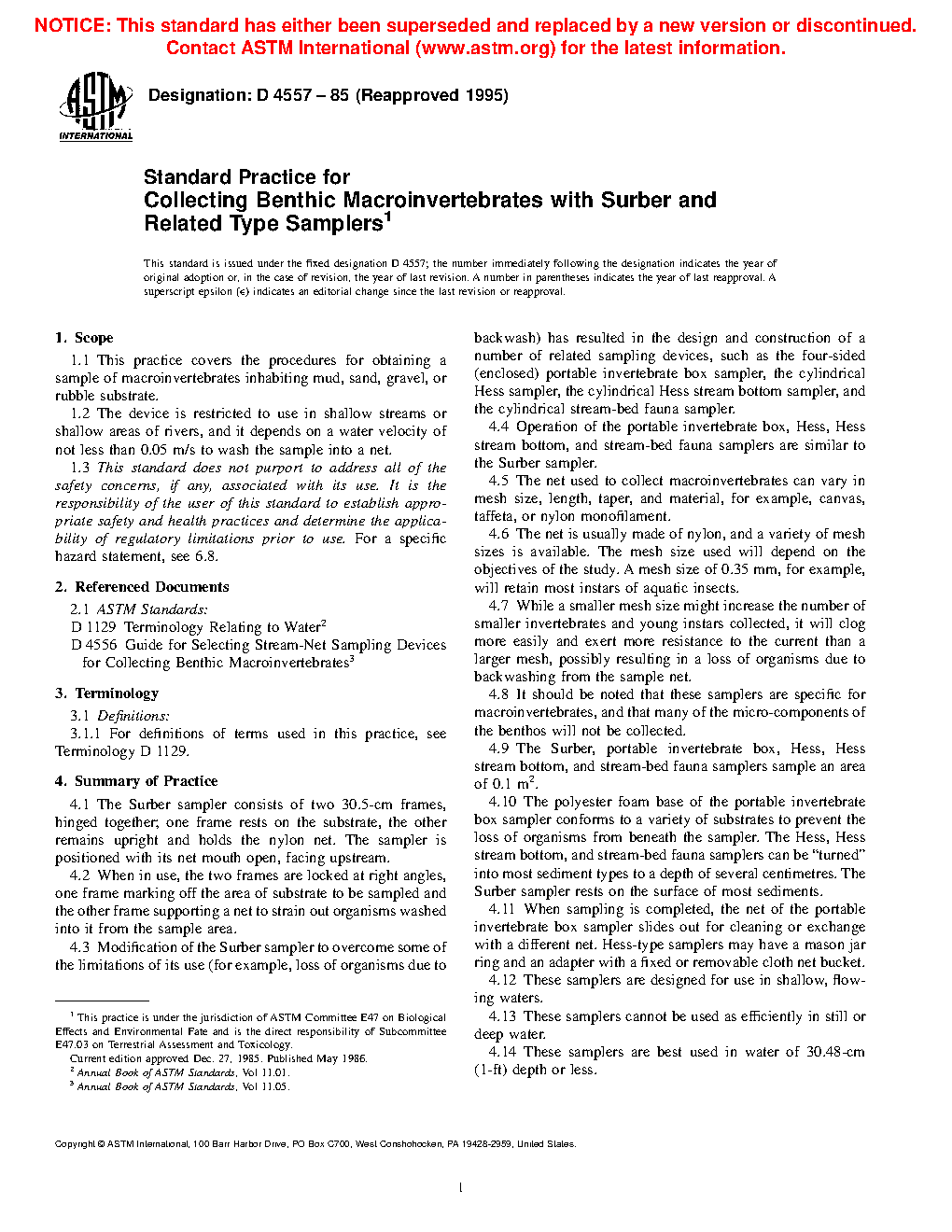 1.1 This practice covers the procedures for obtaining a sample of macroinvertebrates inhabiting mud, sand, gravel, or rubble substrate.