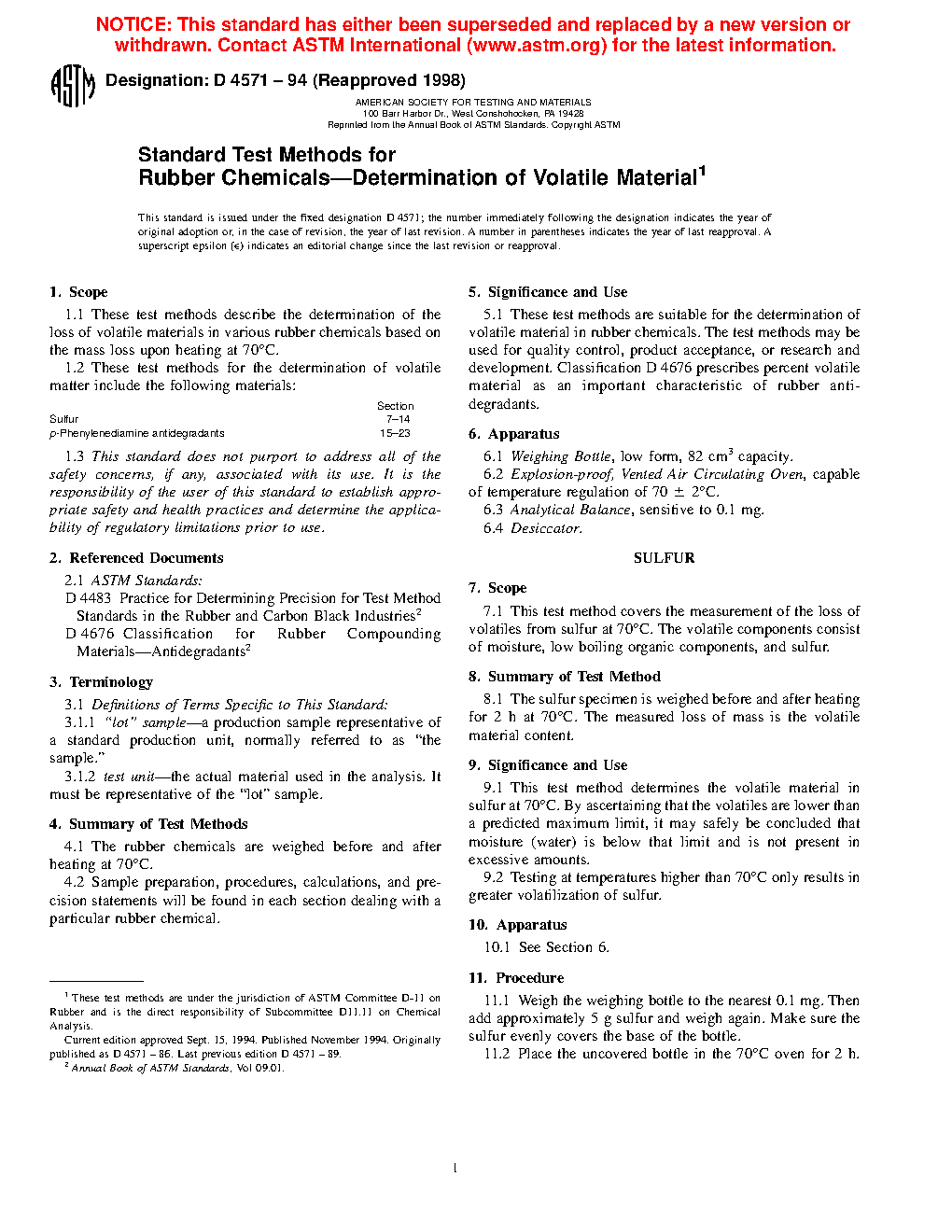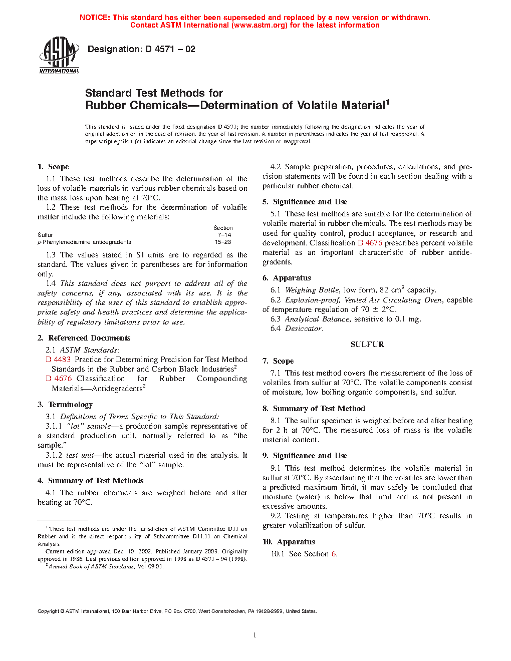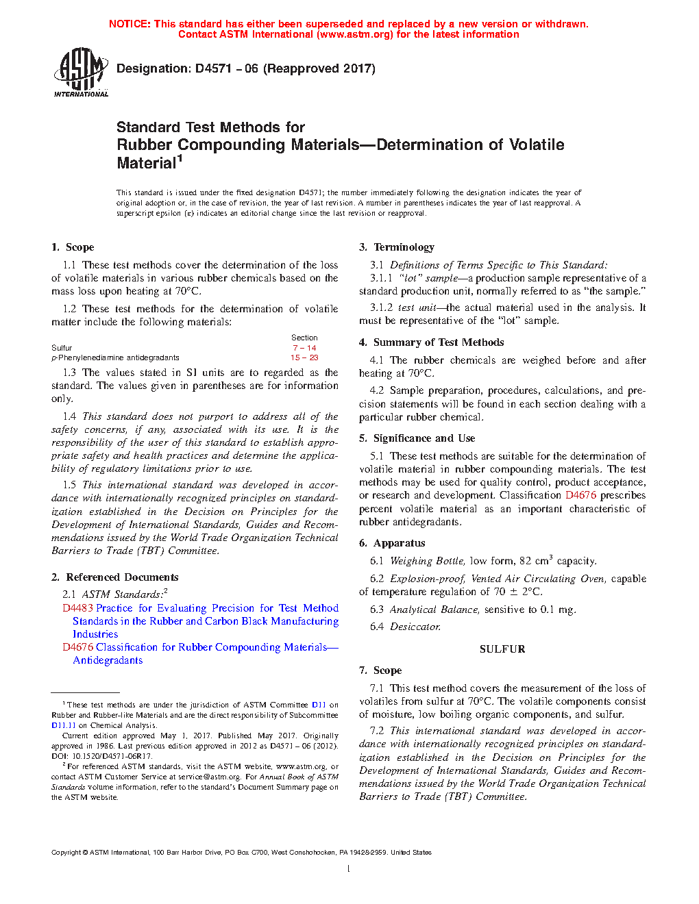 1.1 These test methods cover the determination of the loss of volatile materials in various rubber chemicals based on the mass loss upon heating at 70°C.