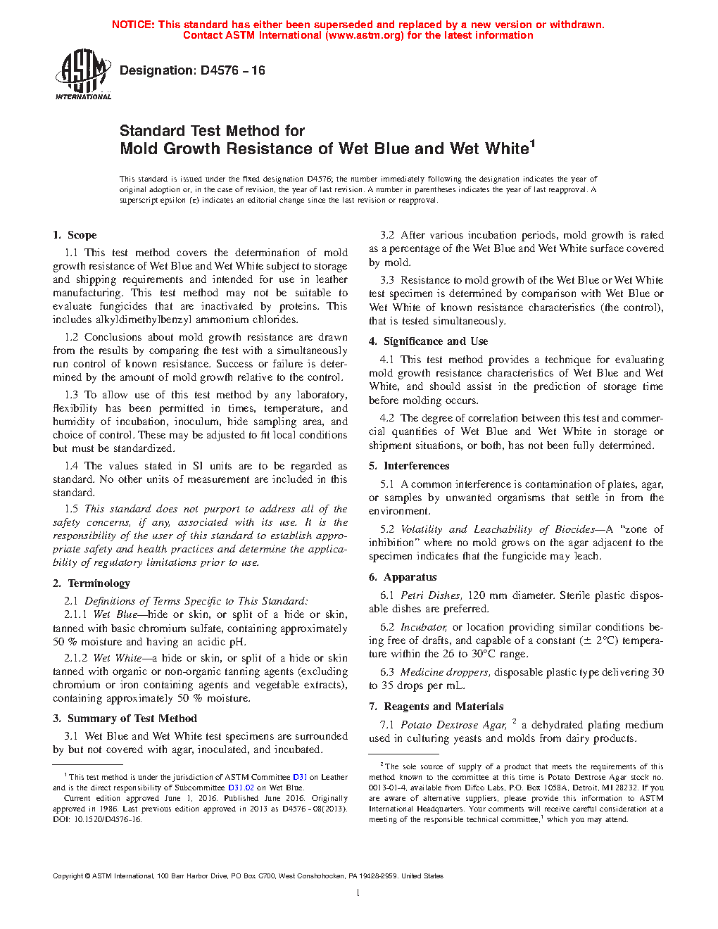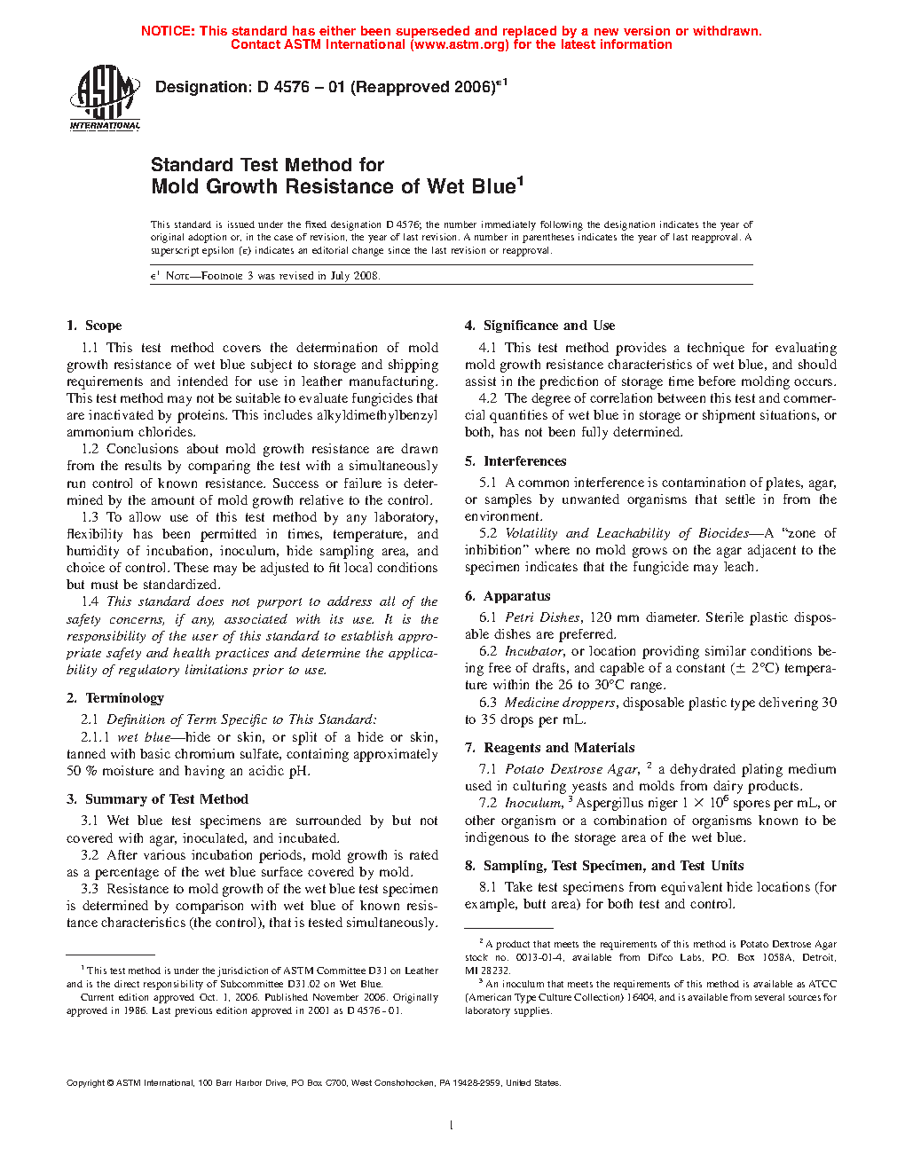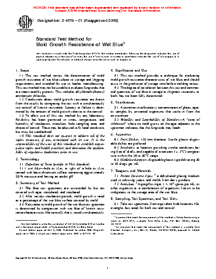 1.3 To allow use of this test method by any laboratory, flexibility has been permitted in times, temperature, and humidity of incubation, inoculum, hide sampling area, and choice of control. These may be adjusted to fit local conditions but must be standardized.