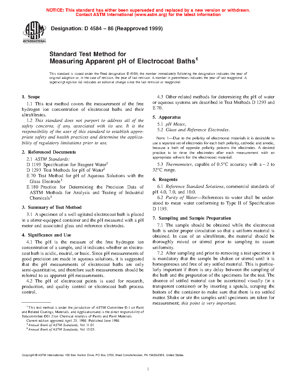 4.2 The pH of electrocoat paints is used for research, production, and quality control or electrocoat bath process control.