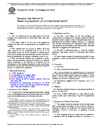 4.1 The pH is the measure of the free hydrogen ion concentration of a sample, and it indicates whether an electrocoat bath is acidic, neutral, or basic. Since pH measurements of good precision are made in aqueous solutions, it is suggested that the pH measurements of electrocoat baths are only semi-quantitative, and therefore such measurements should be referred to as apparent pH measurements.