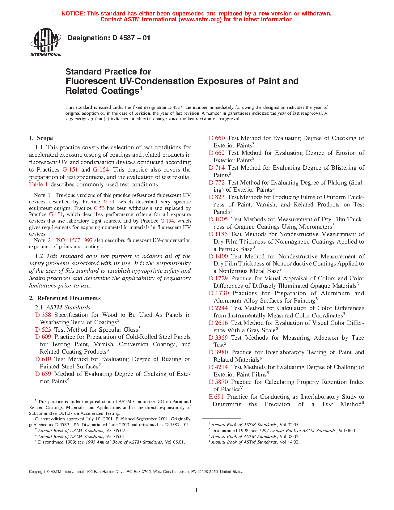 Note 2—ISO 11507:1997 also describes fluorescent UV-condensation exposures of paints and coatings.