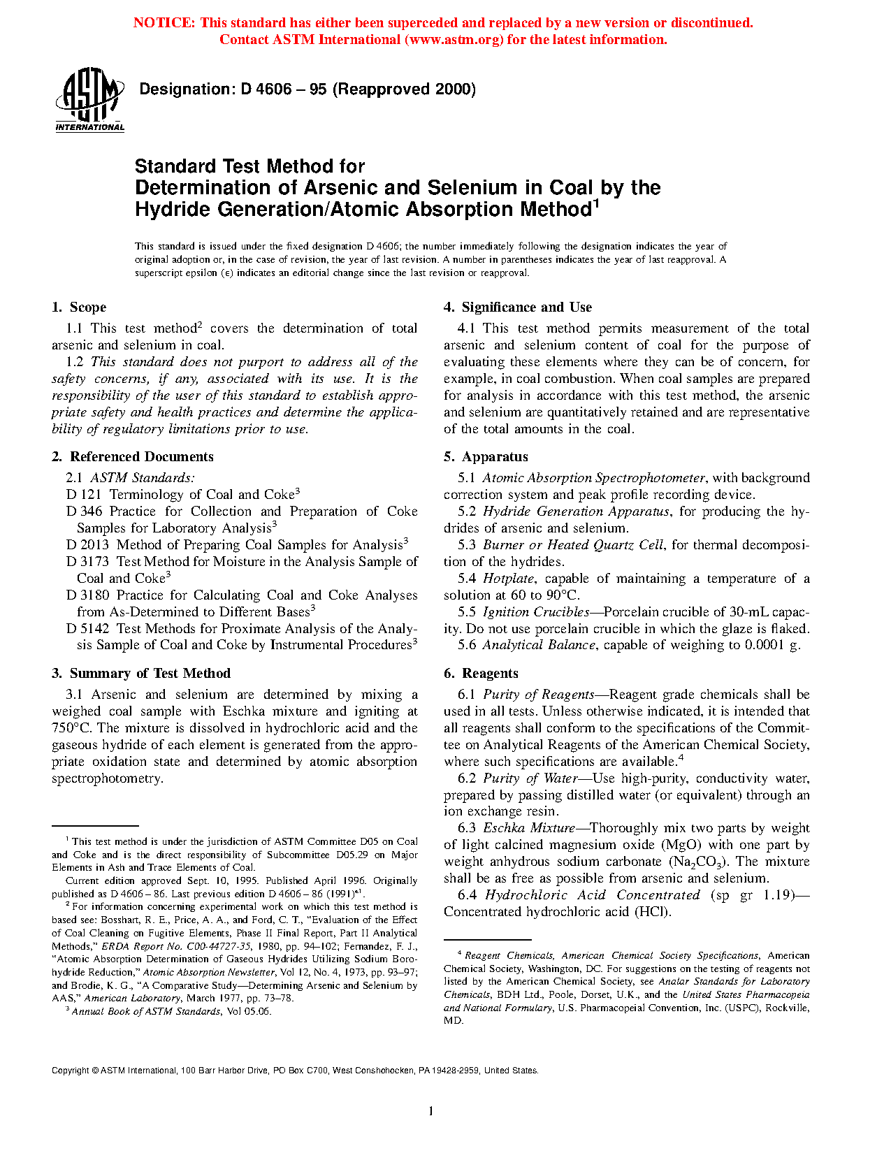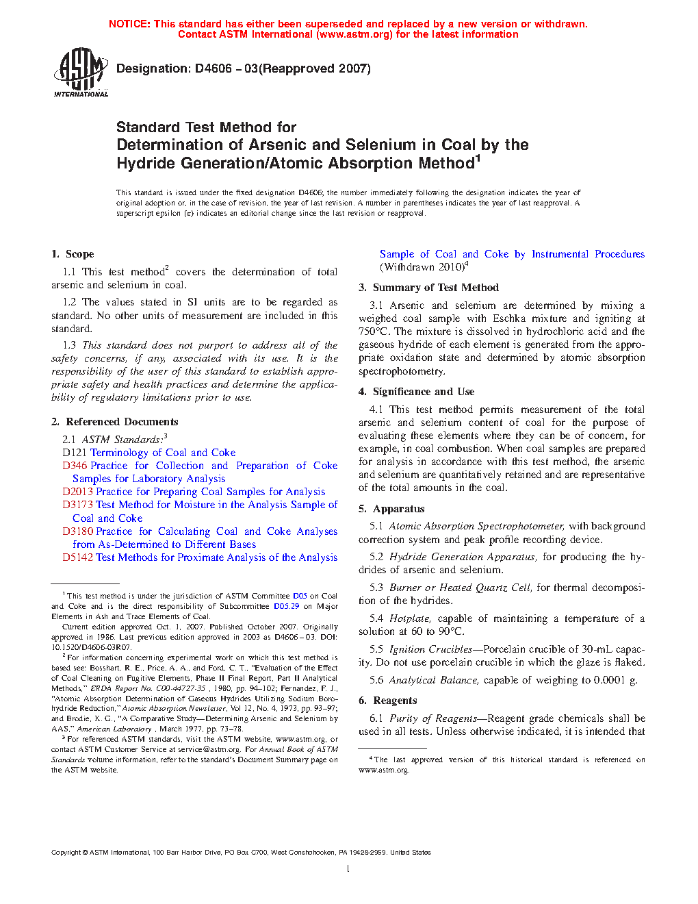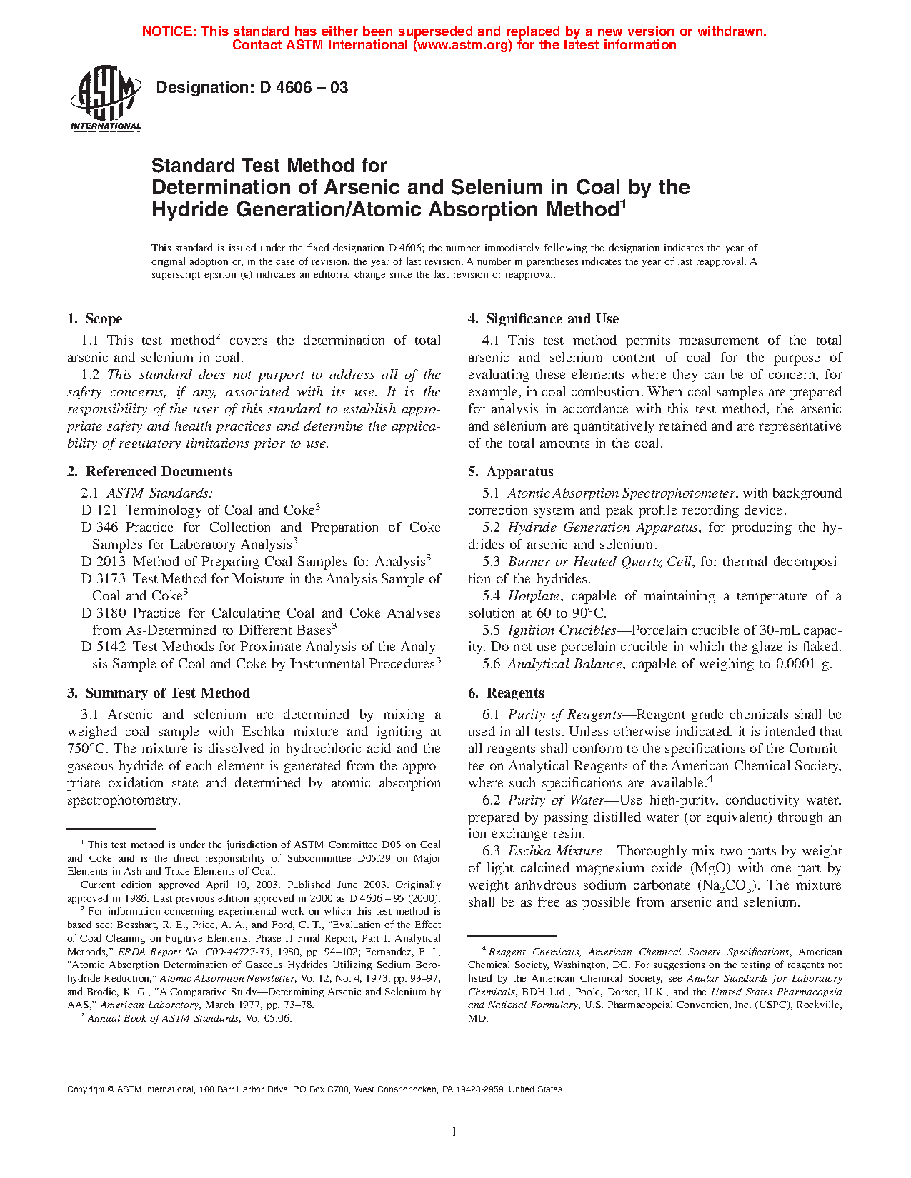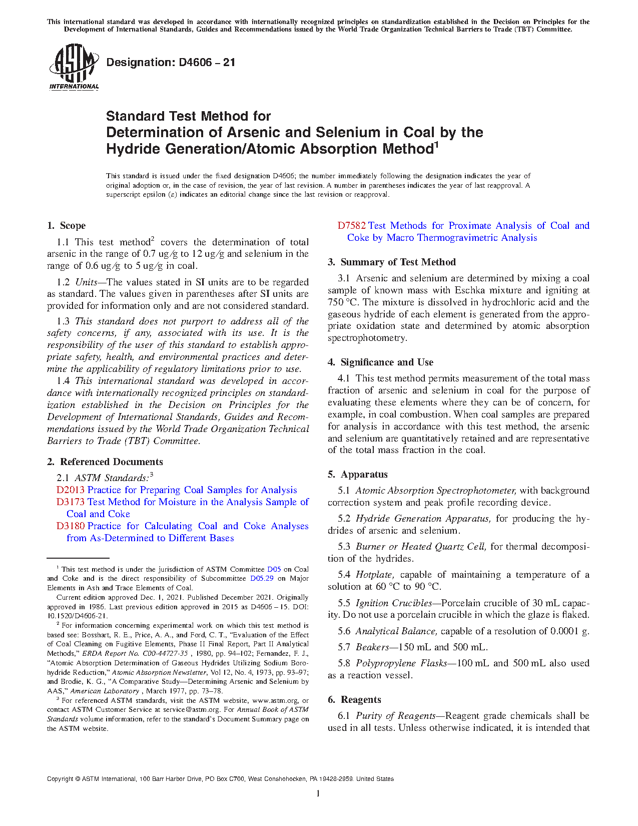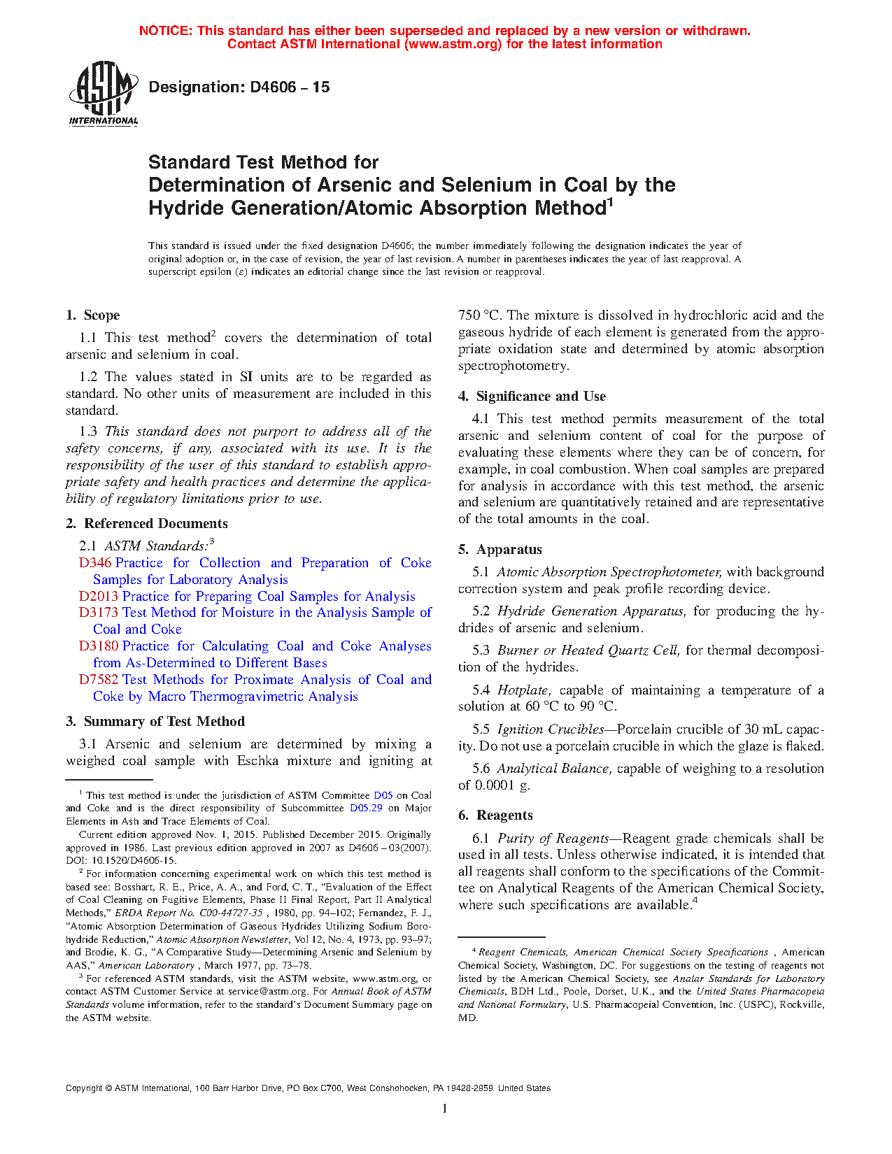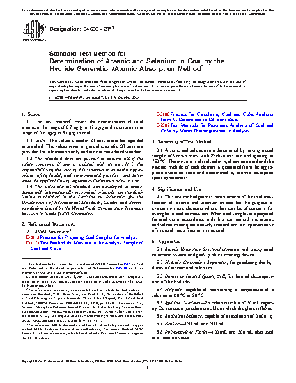 1.1 This test method2 covers the determination of total arsenic and selenium in coal.