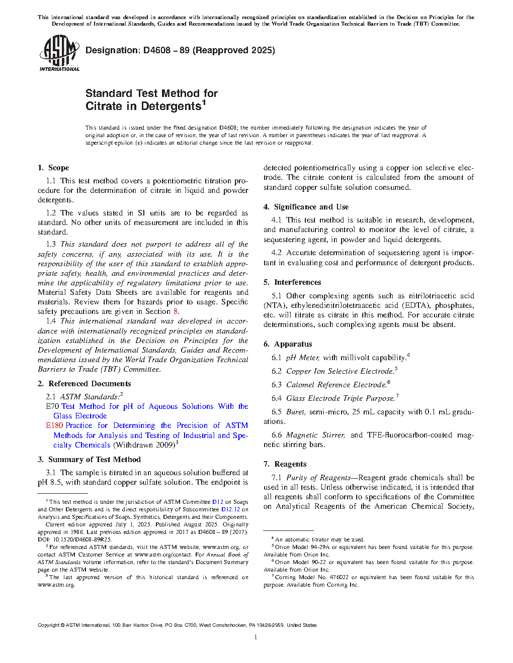 1.1 This test method covers a potentiometric titration procedure for the determination of citrate in liquid and powder detergents.