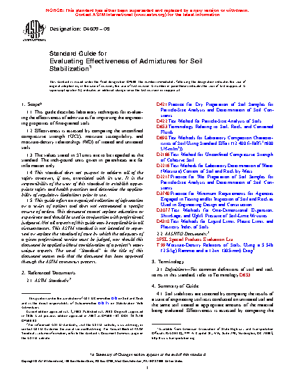 1.1 This guide describes laboratory techniques for evaluating the effectiveness of admixtures for improving the engineering properties of fine-grained soils.