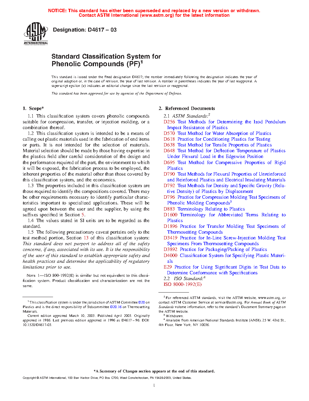 Note 1- ISO 800-1977(E) is similar but not equivalent to this specification. Product classification and characterization are not the same.