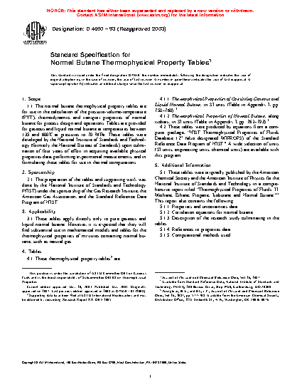 Standard Specification for Normal Butane Thermophysical Property Tables