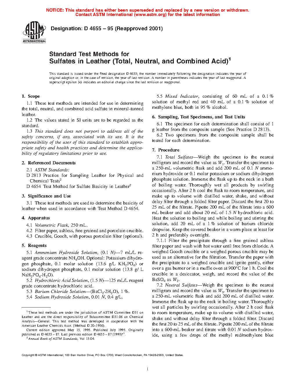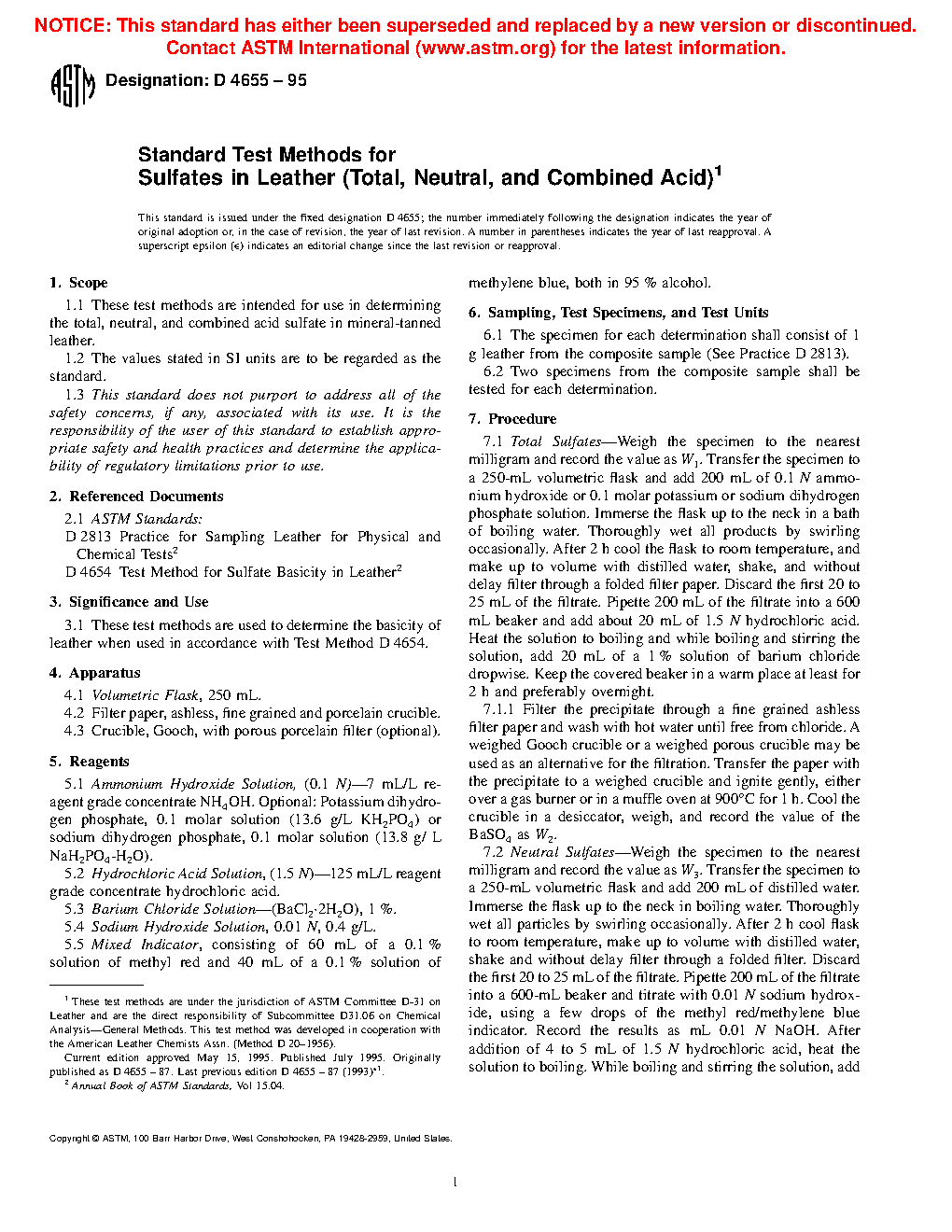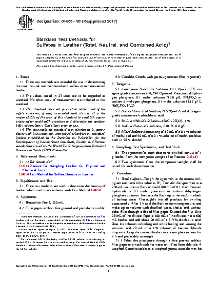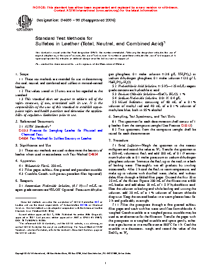 1.1 These test methods are intended for use in determining the total, neutral, and combined acid sulfate in mineral-tanned leather.