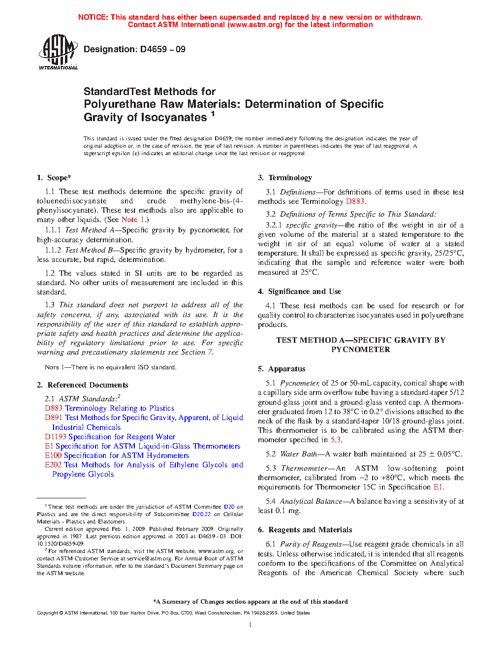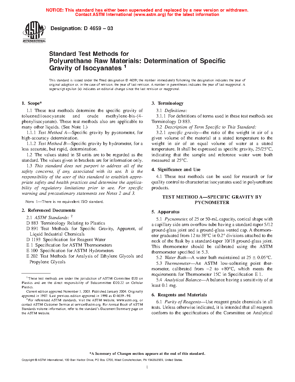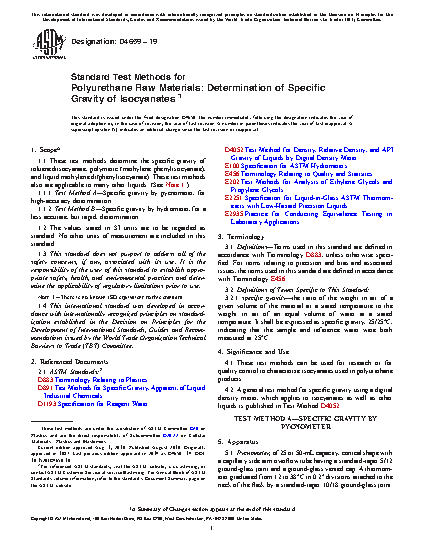4.2 A general test method for specific gravity using a digital density meter, which applies to isocyanates as well as other liquids is published in Test Method D4052.
