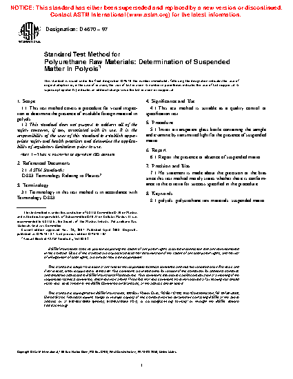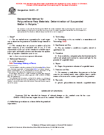 1.1 This test method covers a procedure for visual inspection to determine the presence of insoluble foreign material in polyols.
