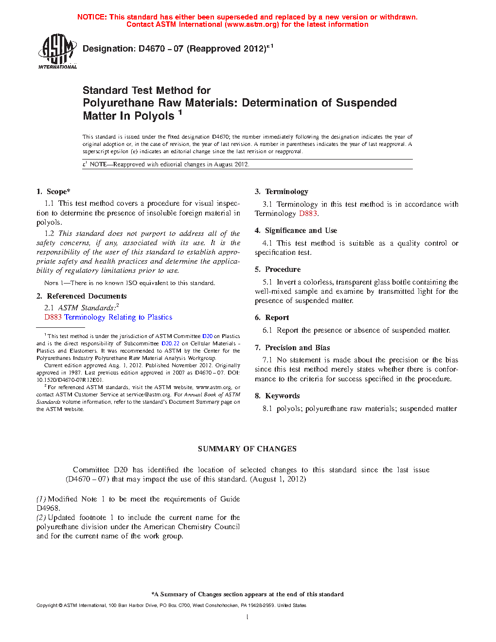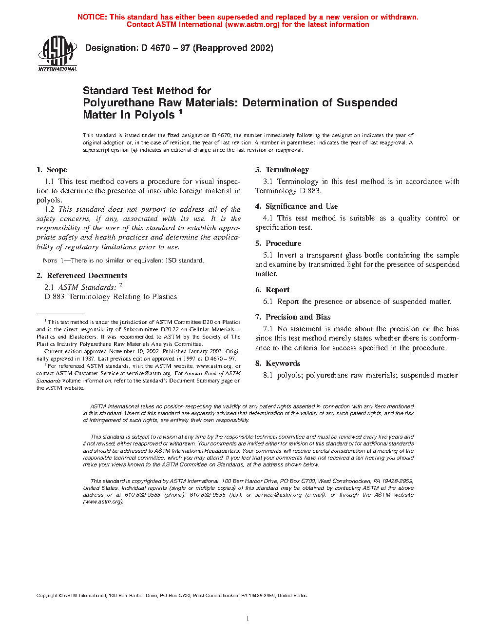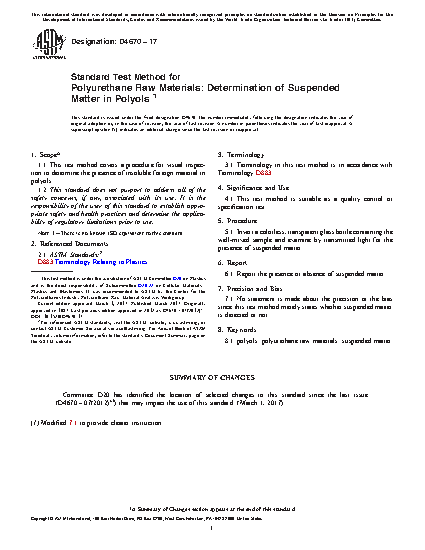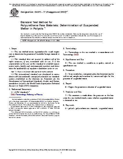 Standard Test Method for Polyurethane Raw Materials Determination of Suspended Matter In Polyols