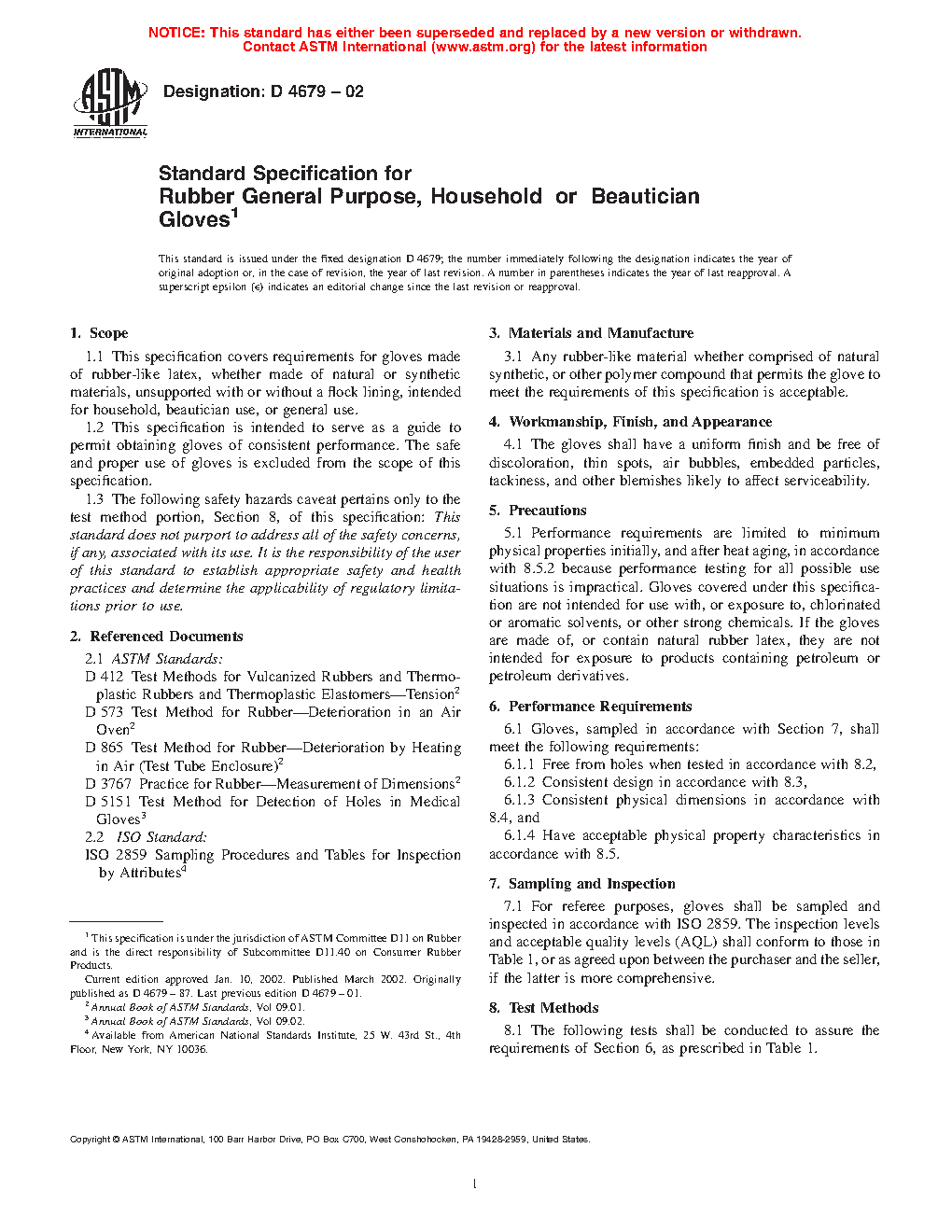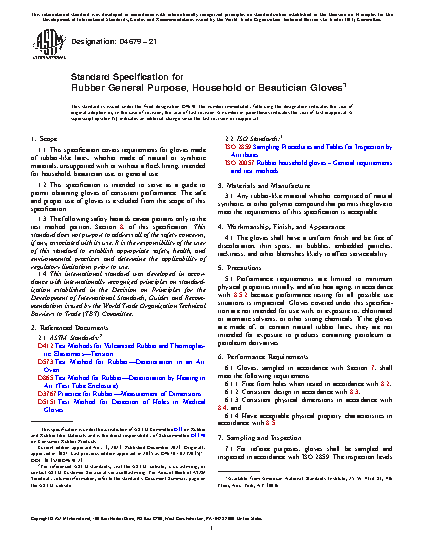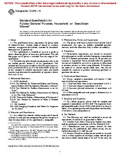 1.1 This specification covers requirements for gloves made of rubber-like latex, whether made of natural or synthetic materials, unsupported and unlined, intended for household, beautician use, or general use.