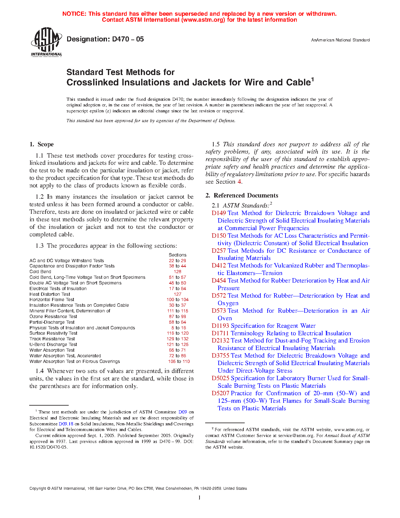 1.1 These test methods cover procedures for testing crosslinked insulations and jackets for wire and cable. To determine the test to be made on the particular insulation or jacket, refer to the product specification for that type. These test methods do not apply to the class of products known as flexible cords.