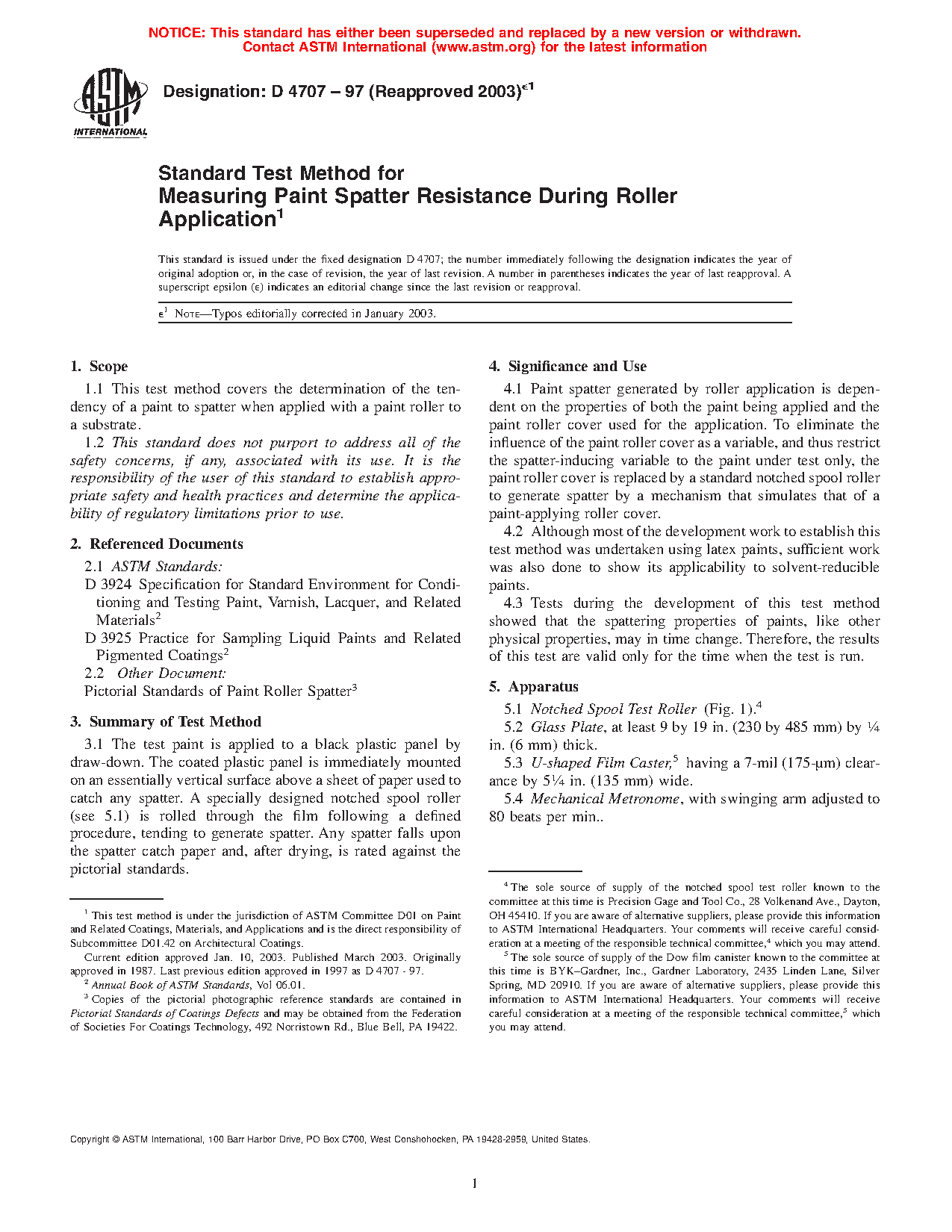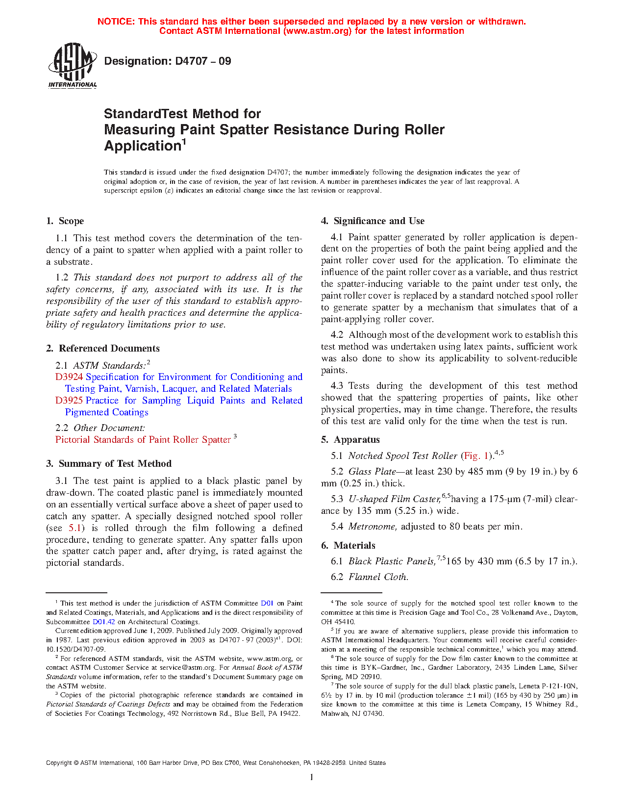 1.1 This test method covers the determination of the tendency of a paint to spatter when applied with a paint roller to a substrate.