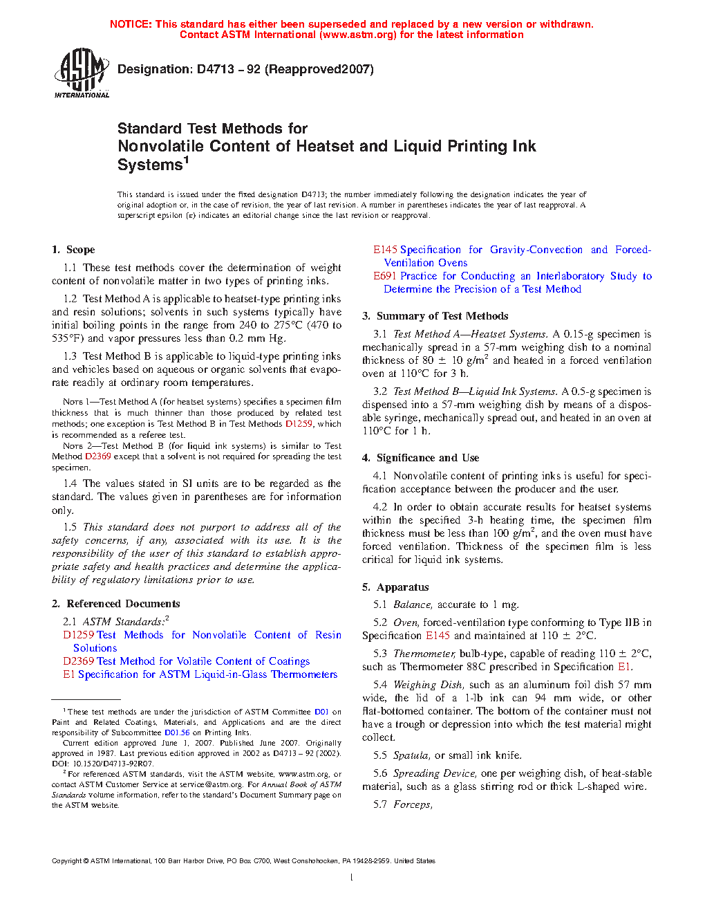 1.1 These test methods cover the determination of weight content of nonvolatile matter in two types of printing inks.