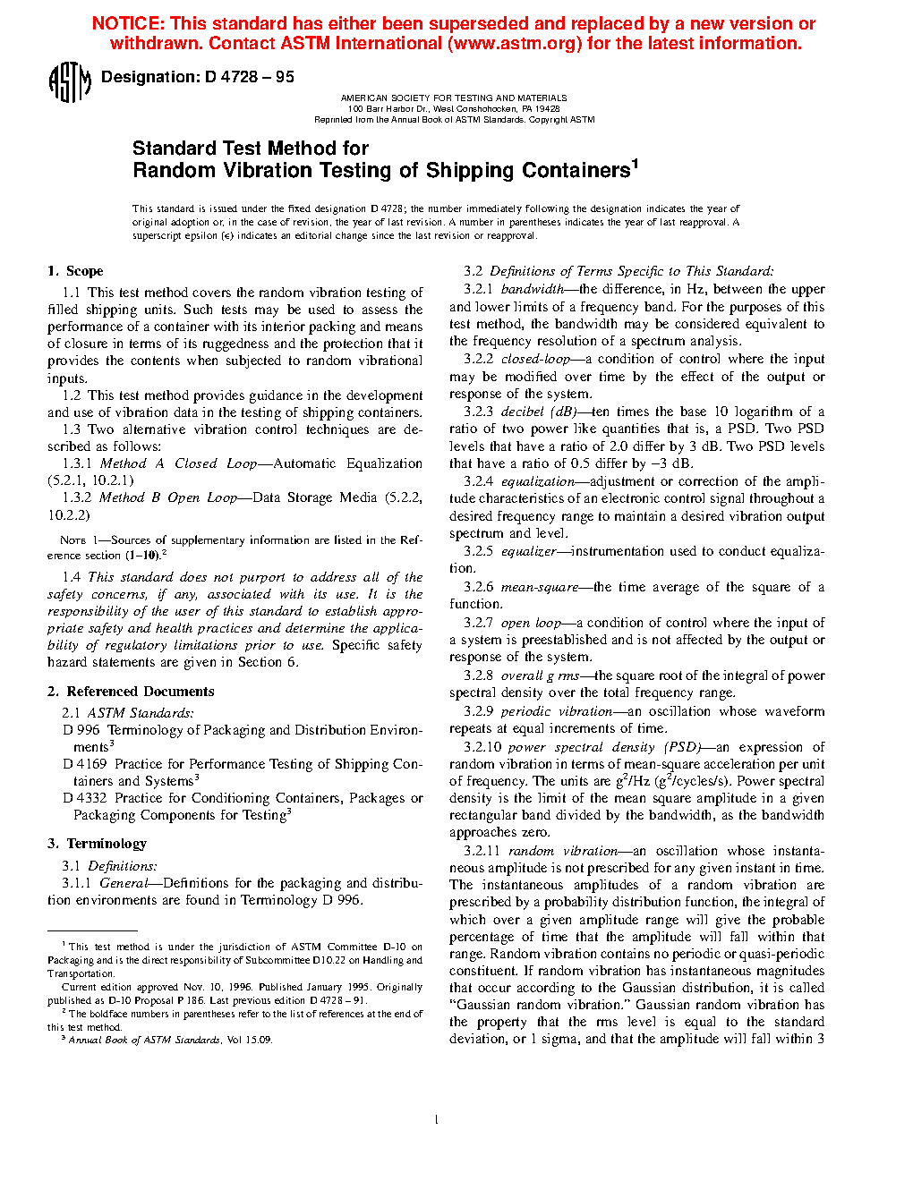 4.6 Random vibration tests may be simultaneously performed with transient or periodic data to simulate known stresses of this type, that is, rail joints, pot holes, etc.
