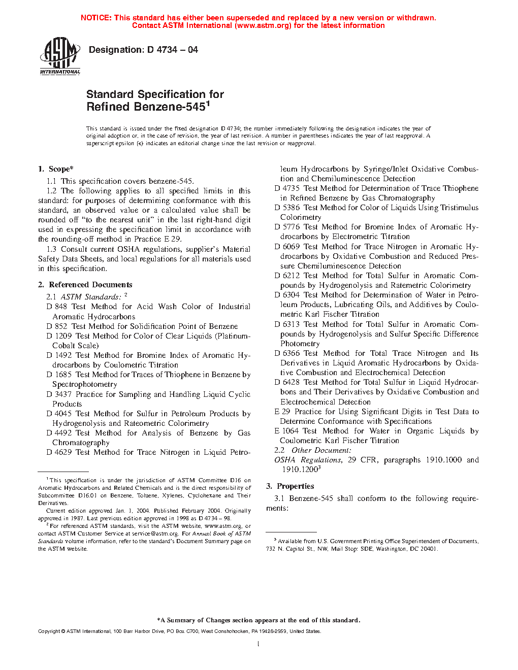 1.1 This specification covers benzene-545.