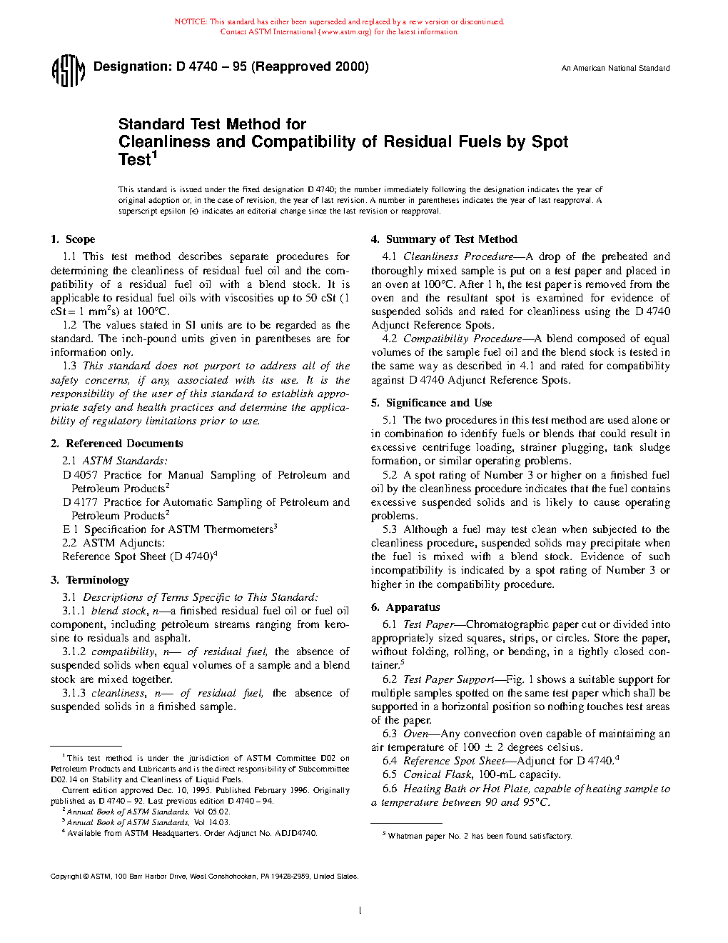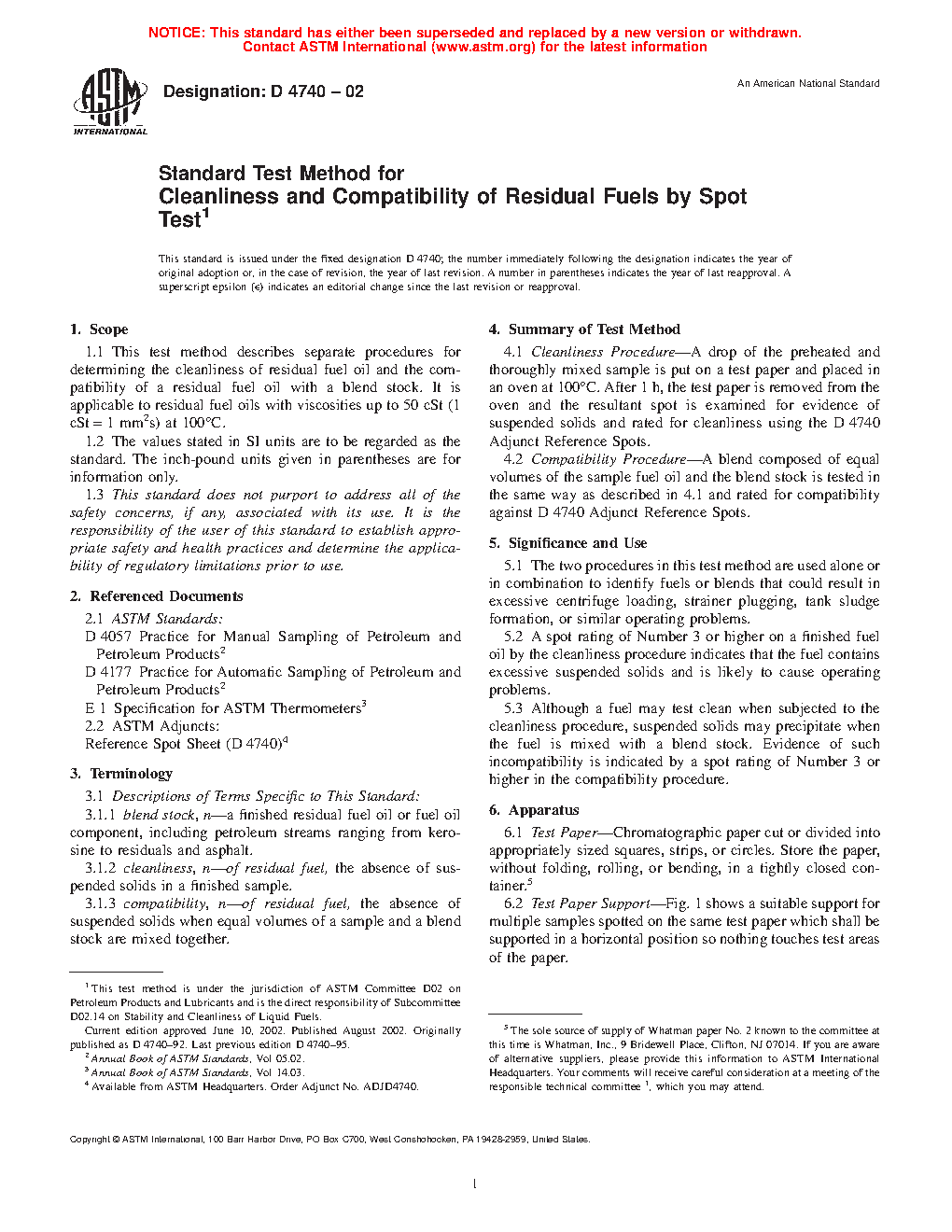 5.3 Although a fuel may test clean when subjected to the cleanliness procedure, suspended solids may precipitate when the fuel is mixed with a blend stock. Evidence of such incompatibility is indicated by a spot rating of Number 3 or higher in the compatibility procedure.