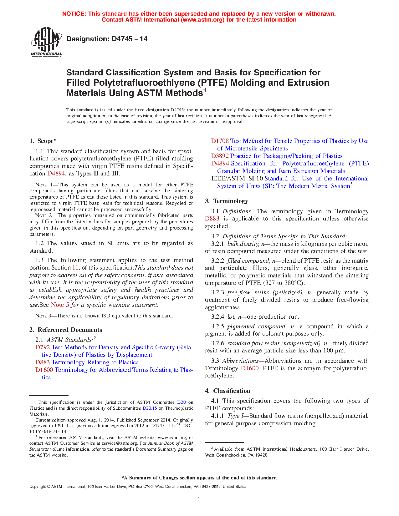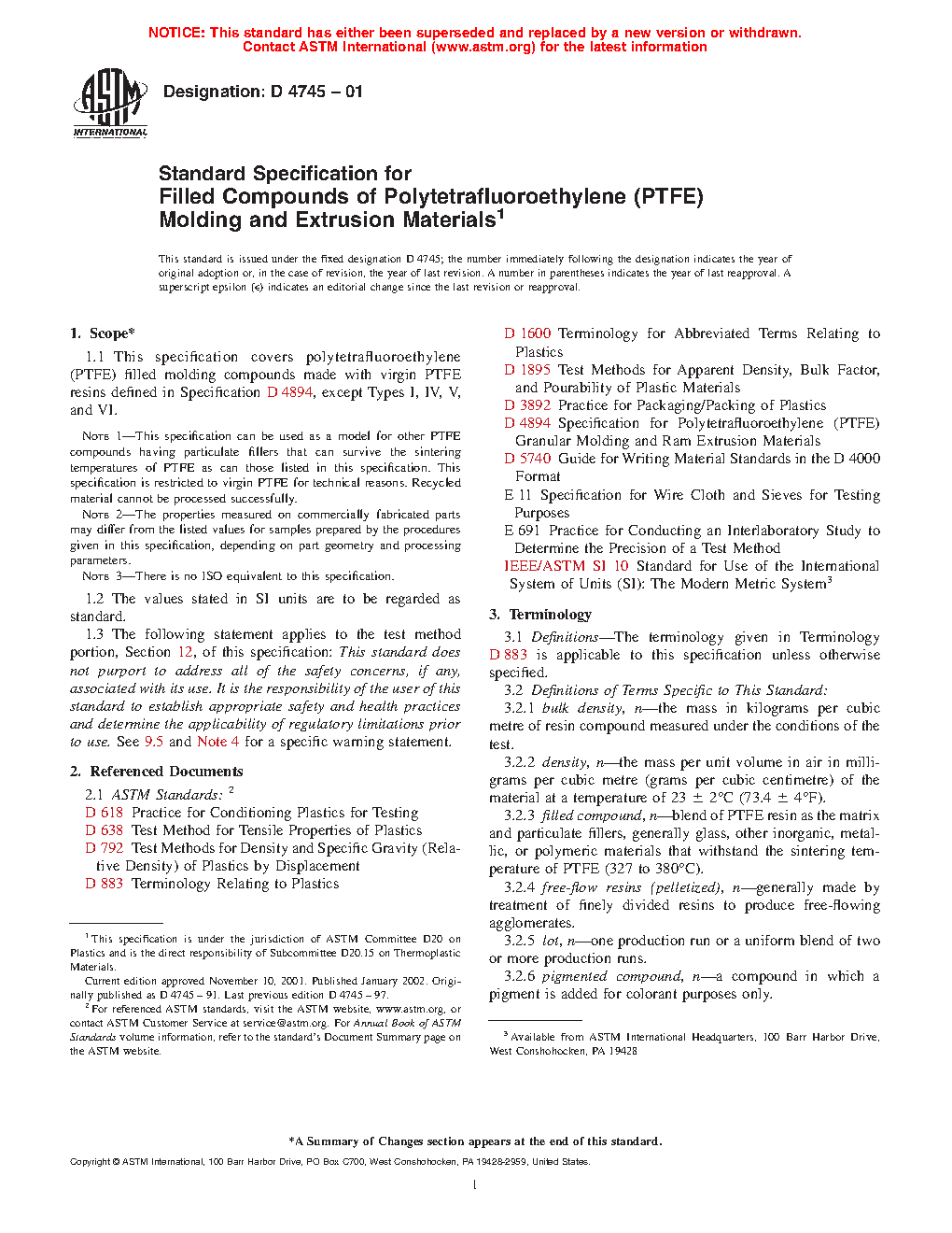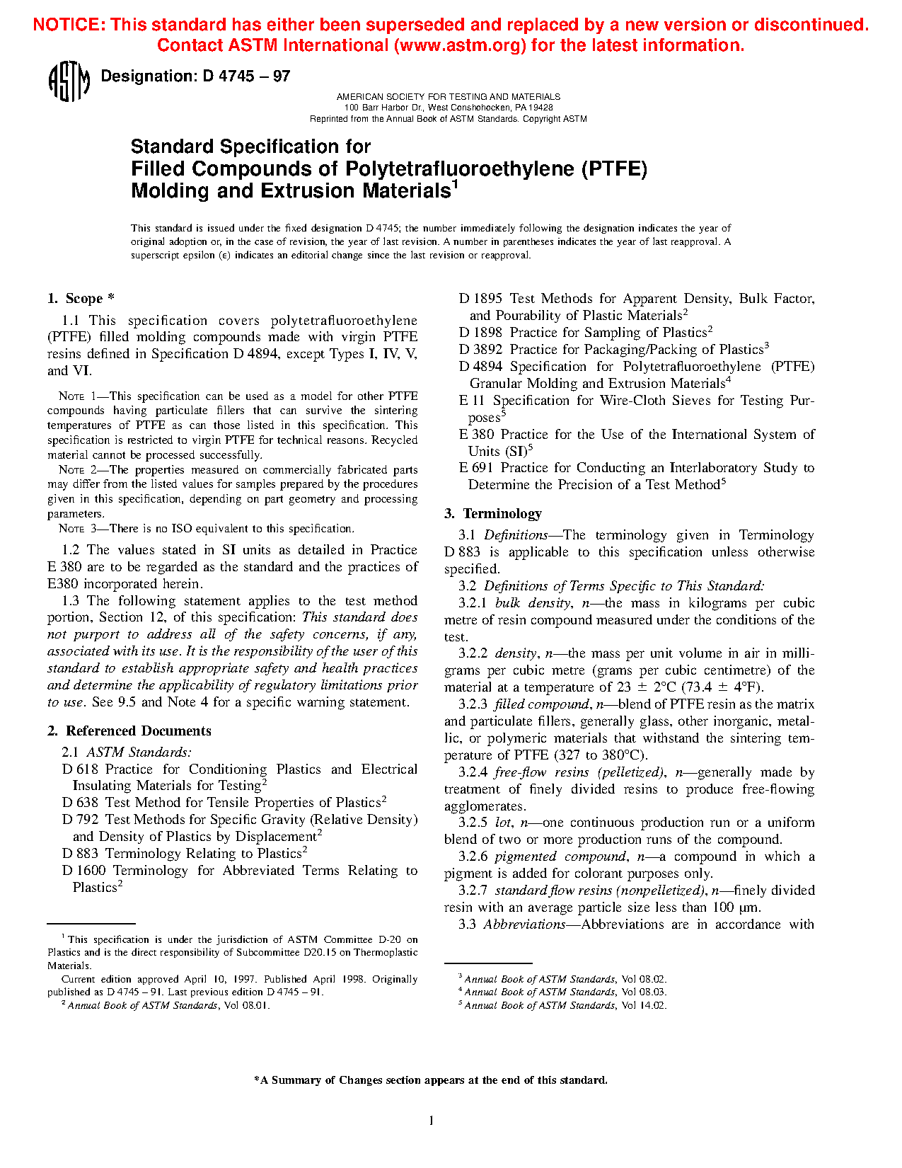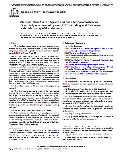 Note 1—This specification can be used as a model for other PTFE compounds having particulate fillers that can survive the sintering temperatures of PTFE as can those listed in this specification. This specification is restricted to virgin PTFE base resin for technical reasons. Recycled or reprocessed material cannot be processed successfully.