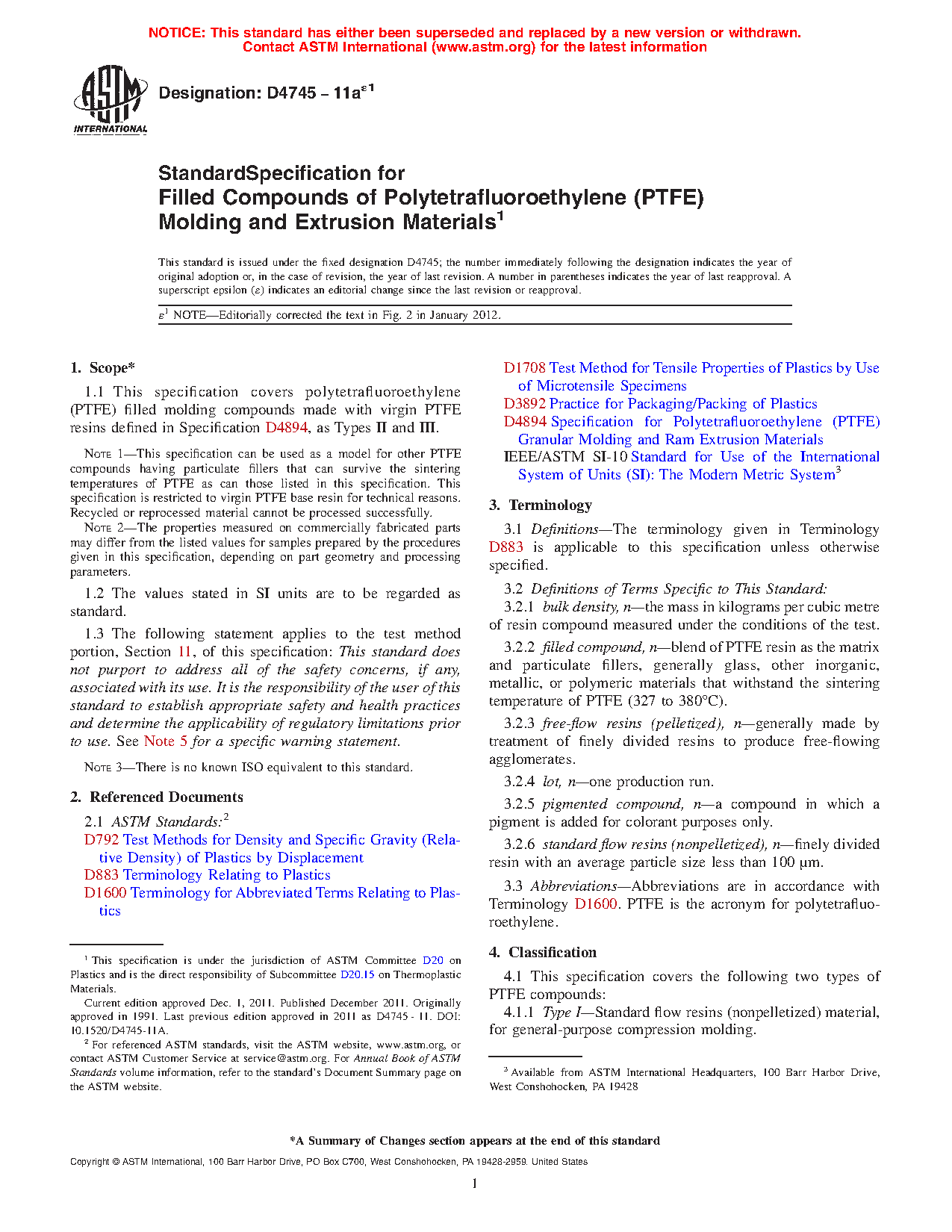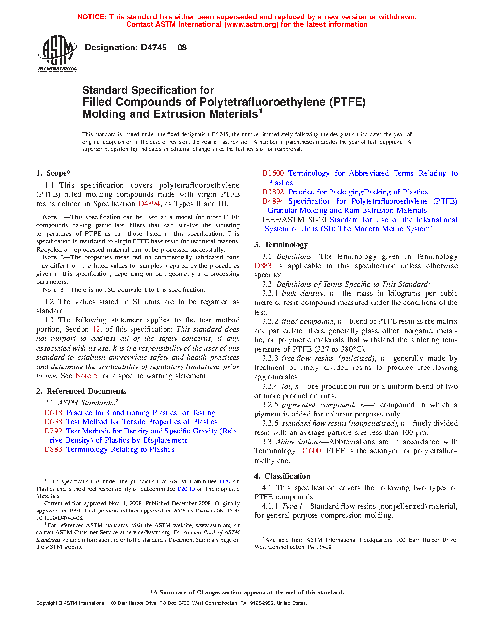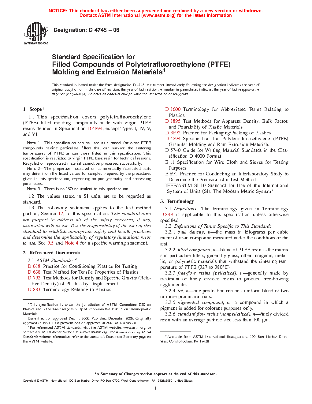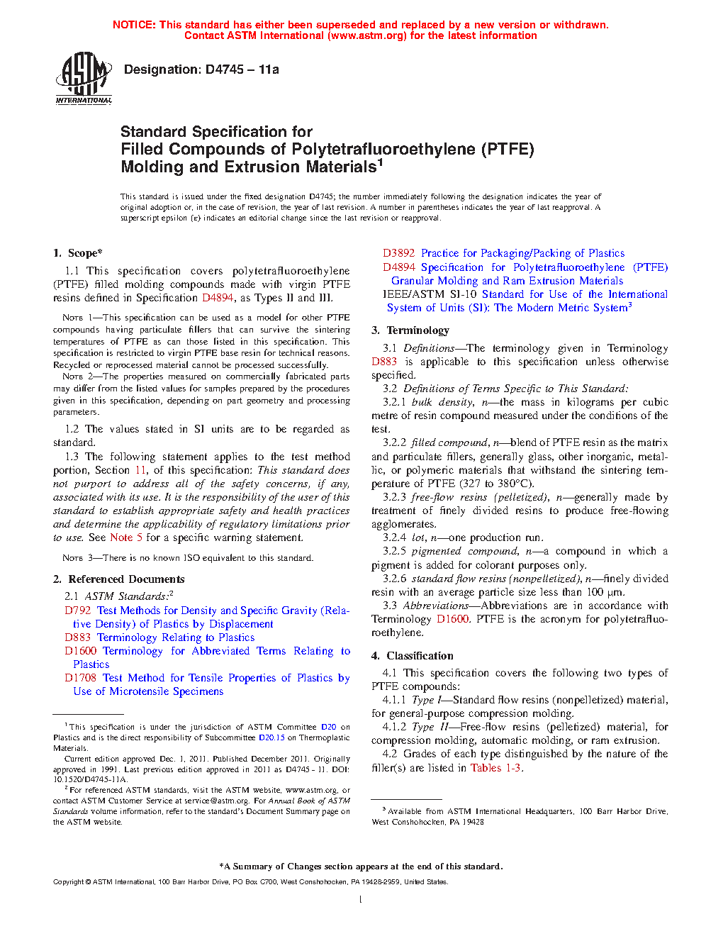Note 1—This specification can be used as a model for other PTFE compounds having particulate fillers that can survive the sintering temperatures of PTFE as can those listed in this specification. This specification is restricted to virgin PTFE base resin for technical reasons. Recycled or reprocessed material cannot be processed successfully.