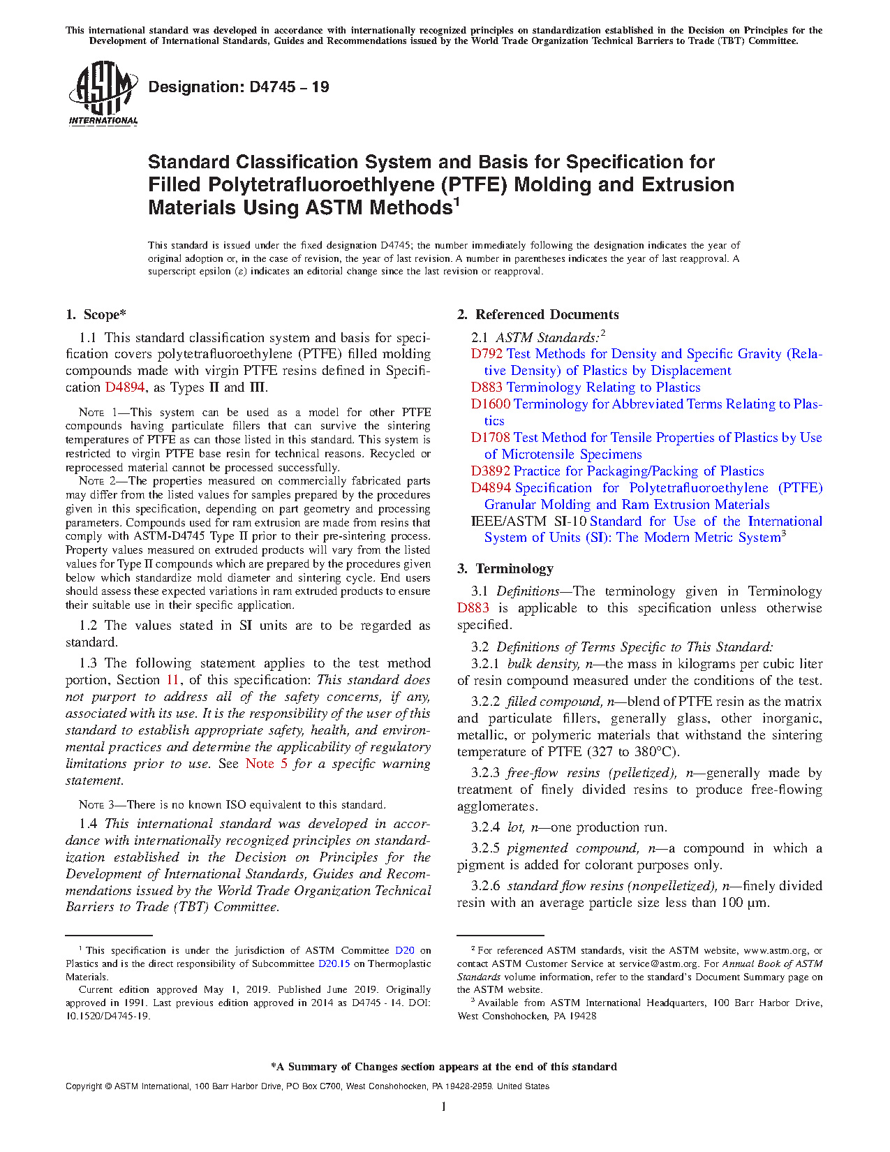 Note 1: This system can be used as a model for other PTFE compounds having particulate fillers that can survive the sintering temperatures of PTFE as can those listed in this standard. This system is restricted to virgin PTFE base resin for technical reasons. Recycled or reprocessed material cannot be processed successfully.