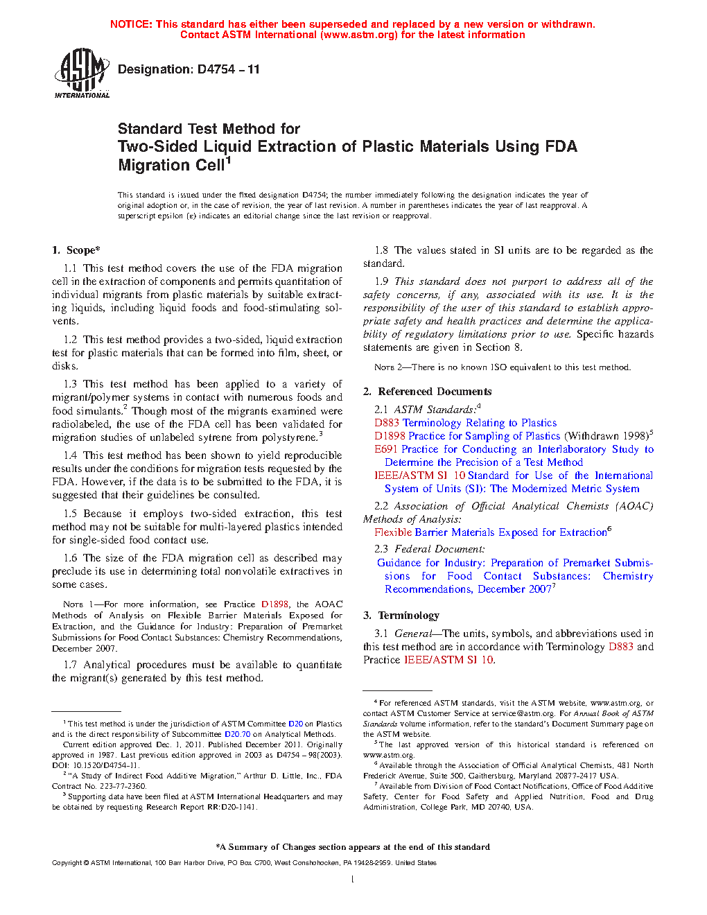 1.6 The size of the FDA migration cell as described may preclude its use in determining total nonvolatile extractives in some cases.