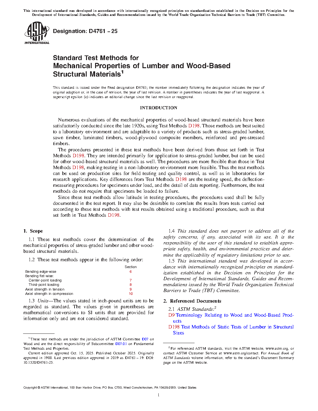 1.1 These test methods cover the determination of the mechanical properties of stress-graded lumber and other wood-base structural material.