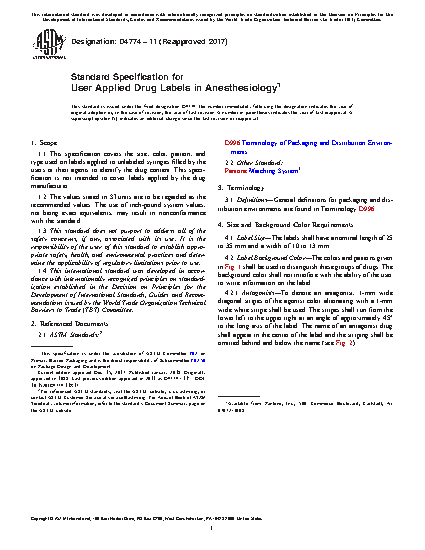 1.1 This specification covers the size, color, pattern, and type used on labels applied to unlabeled syringes filled by the users or their agents to identify the drug content. This specification is not intended to cover labels applied by the drug manufacturer.