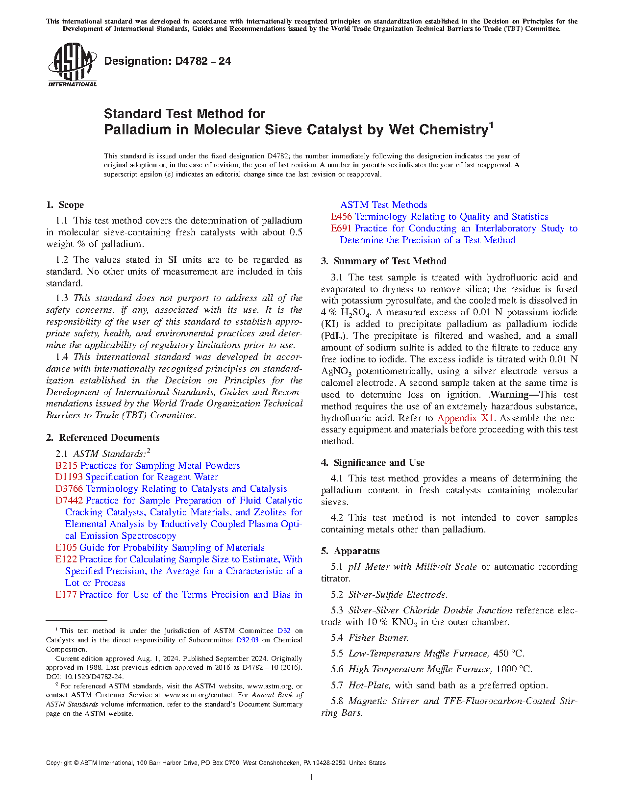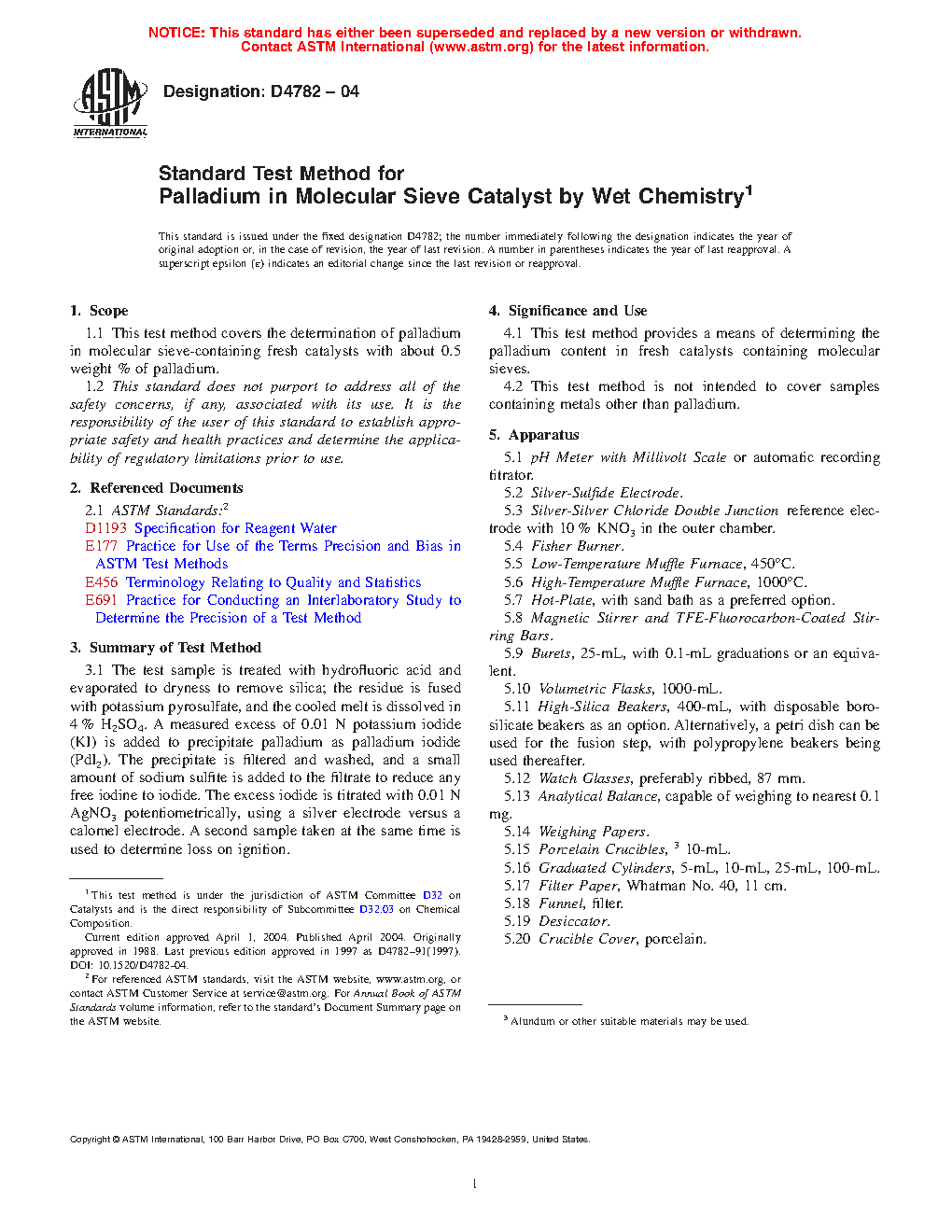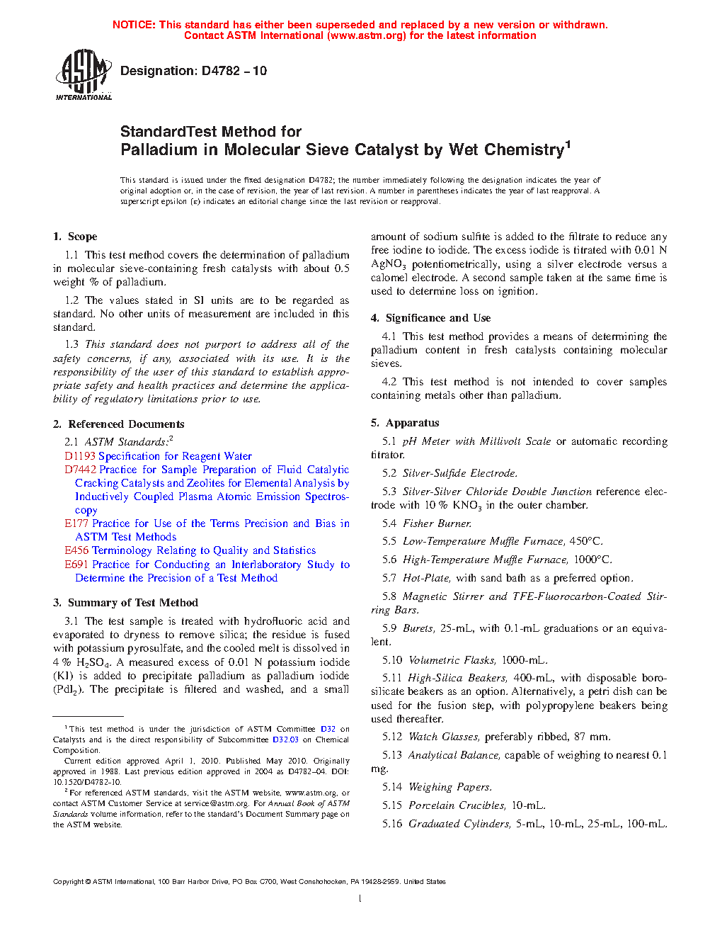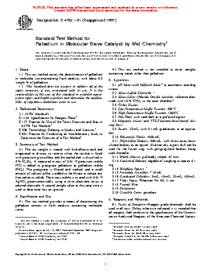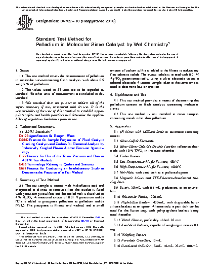 4.1 This test method provides a means of determining the palladium content in fresh catalysts containing molecular sieves.